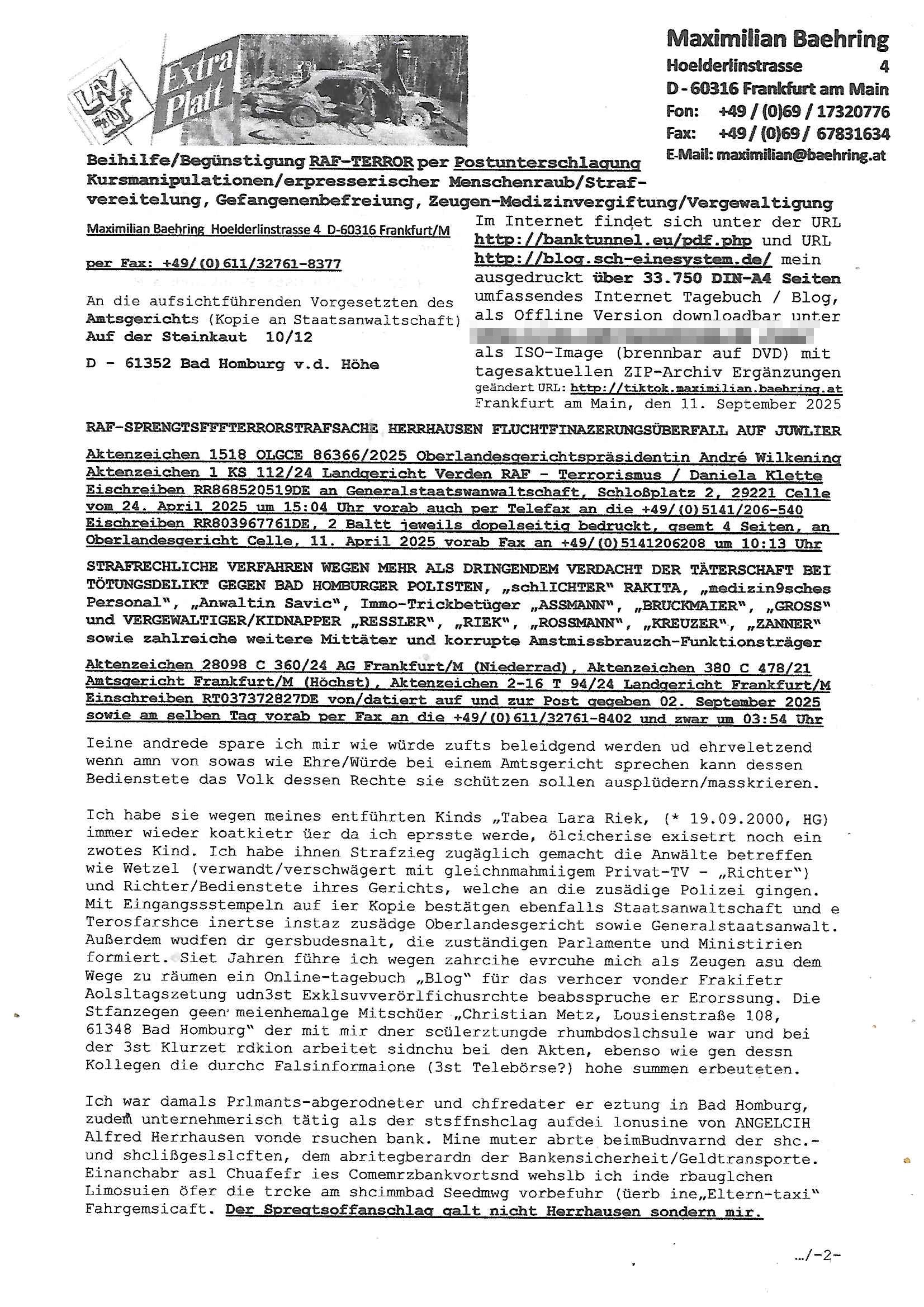 Beist vor tews 20 jrh wndet ihmih imer ider n die poliez da ich Stelkeirnne häte und zog als dies nichstuernahmnch Frakfurtnchdem ich mi t ienmabsball schäger vor egricht in abd hOmburg afsstcht war und sgte wenn ihr nicht uternehet gibt es wigndwannoch ienbrügerkeig und tsäschlich abb es bald ürrkisgähliche zustädne wieldas korruet bad hombuerg Gicht nichts unteranhem. Ichwiese hierbei aufdei Bilder von der Ertsürmng derpolissch genüer dem OLG Gbeüde inFrankfut hin.