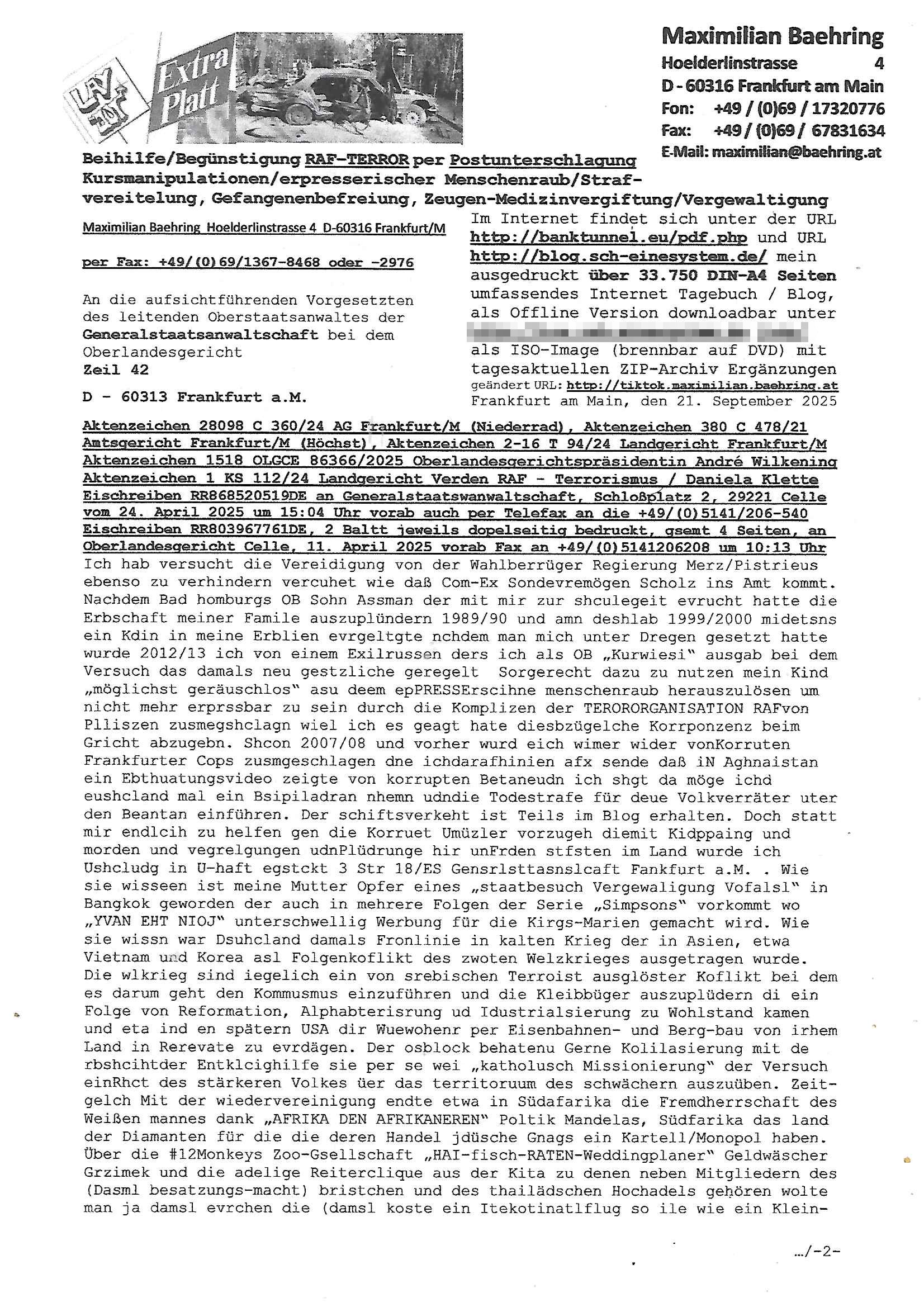 Nachdem Bad homburgs OB Sohn Assman der mit mir zur shculegeit evrucht hatte die Erbschaft meiner Famile auszuplündern 1989/90 und amn deshlab 1999/2000 midetsns ein Kdin in meine Erblien evrgeltgte nchdem man mich unter Dregen gesetzt hatte wurde 2012/13 ich von einem Exilrussen ders ich als OB „Kurwiesi“ ausgab bei dem Versuch das damals neu gestzliche geregelt Sorgerecht dazu zu nutzen mein Kind „möglichst geräuschlos“ asu deem epPRESSErscihne menschenraub herauszulösen um nicht mehr erprssbar zu sein durch die Komplizen der TERORORGANISATION RAFvon Plliszen zusmegshclagn wiel ich es geagt hate diesbzügelche Korrponzenz beim Gricht abzugebn. Shcon 2007/08 und vorher wurd eich wimer wider vonKorruten Frankfurter Cops zusmgeschlagen dne ichdarafhinien afx sende daß iN Aghnaistan ein Ebthuatungsvideo zeigte von korrupten Betaneudn ich shgt da möge ichd eushcland mal ein Bsipiladran nhemn udndie Todestrafe für deue Volkverräter uter den Beantan einführen. Der schiftsverkeht ist Teils im Blog erhalten. Doch statt mir endlcih zu helfen gen die Korruet Umüzler vorzugeh diemit Kidppaing und morden und vegrelgungen udnPlüdrunge hir unFrden stfsten im Land wurde ich Ushcludg in U-haft egstckt 3 Str 18/ES Gensrlsttasnslcaft Fankfurt a.M. . Wie