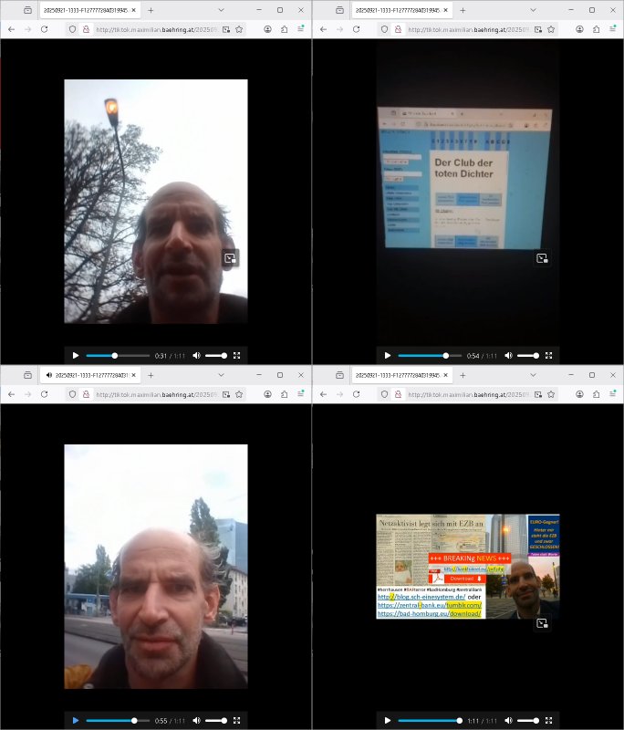 Im Internet findet sich unter der URL http://banktunnel.eu/pdf.php und URL http://blog.sch-einesystem.de/ mein ausgedruckt über 33.750 DIN-A4 Seiten umfassendes Internet Tagebuch / Blog, als Offline Version downloadbar unter http://*** /***/ als ISO-Image (brennbar auf DVD) mit tagesaktuellen ZIP-Archiv Ergänzungen geändert URL: http://tiktok.maximilian.baehring.at