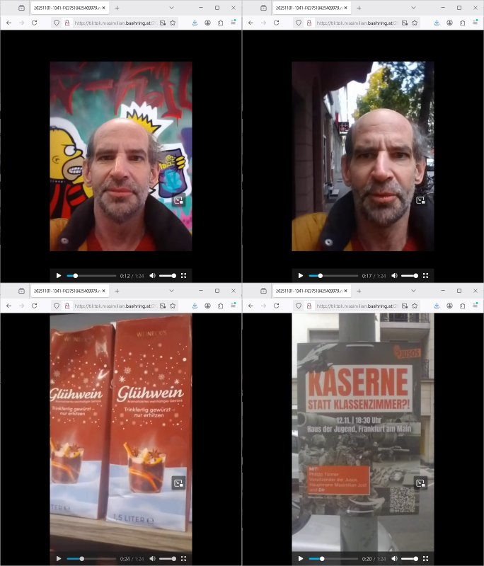 01.11.2025 13:41 http://tiktok.maximilian.baehring.at/20251101-1341-F837518425409979.mp4 [0] "202511011341-0-1.jpg" [1] "202511011341-0-2.jpg" [2] "202511011341-0-3.jpg" [3] "202511011341-0-4.jpg" |