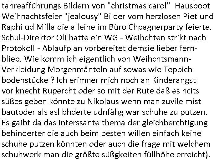 20.12.2025 02:30 Nun zum 18:00 Uhr TV - Vorabendprogramm von gestern, Freitag dem 19. Dezember 2025. Als ich fertig war damit zu versuchen meine Eltern zu informieren daß mir mal wieder zähne aus dem Mund brechen weil Zahnärzte mit ihren Komplizen bei Krakenkassen und wiederum deren Komplizen bei Jobcntren absichtlich gepfuscht haben udn den Fernsher einschaltete sah man gerade wie Homer in einem Junkie Viertel aufräumte zusammen mit Nachbar Ned Flanders und dafür von der Kirchengemeide belohnt wurde mit einer Reise zum Grand Canyon. Auf dem weg dorthin gab es eine Szene mit einer Bären - Parkplatz erleichterung. Im Grand Canyon stiß man auf ein film-team das man angelich ausplünderte. Gabes da nicht ahc mle ien szen wo die #simpsons bei eienr "scripted Reality" serie mit-machen in einem Hotel am Flughafen und zu früh aus-scheiden wo sie leben müssn wie zur jahrhundert-wende? Dann ging es passend zur 90 Mrd Spende für Waffen an die Ukraine aus eigefrorenem russischen Staatsvermögen (Oligarchen Yachten, Steuer-/Kapitalfucht Zaren-familie) um aserviertes Geld daß sich Chief "Spearmdtin" #wieGum-P aus der Beute krimineller ruabzüge in die eigene Tasche steckte (siehe dazu auch MEINE Idee zu #aSeriousFlanders im Stile eines Tarantino Films). Homer sollte ein Rede halten und hatte angeblich lampenfiber,d as ist fsch, richtg ist daß Burns der ja imer alles von seinen Ghostwerter-Anwälte schreiben lässt (siehe mikeGross #Suits) ihm sein Rede-manuskript stahl (per EDV-hack wie Frau C**kovic Inhate küftegr simposn folgen aus mien Blog das sie unerlaubterweise pseudononyosuiert nchdem sie dch ien medikanetn-ver-giftung dertwgen ich nicht mer shciben kann ordlche erricht hat daß man mir eine Sekrtäterin bezahlt damt mien aussge fürs gericht ditrert werdnekanndwobe sie aber das Diktat sinetsletend verfälscht und mienPost abfängt?) Es entstand der Mythos Hoemr hab angst ien rde zu haten "ANST IM DUKLEN ZU REDEN" (stimmt nicht, ich erinnere mal als Gewebis epximrnt an die as der Stehgreif Reden die wir im BWL Studium proben sollten oder fats imemr gut bewertete Refate von mir in der Schule). Ich glaube da gings eher darum einem von der Balkan- Geburtstags-clown-Mafia (siehe Vater Kur-Einstellungs-Gesundheitscheck musterung "Suizid" Film #theGame/#fullDisclosure mit Michael Douglas) nen Impro-Comedy "Caching Beratervertrag" zu geben von dieser "U-Bahn Kontrollöre" a-cappella Sychornsprcher Kidnapper Mafia um Matthias Keller vom Kinder-fernsehen. Homer sollte als "open microphone / Spke word" veranstaltung "Stslsistch hsuporzess gerichts-poesie" Stand-Up Comedian lernen auf Bühnen vor großem Publikum zu sprechen. Ich gabe es gibt da ganz andere Gründe für sie anst vor ien Auftitt, einfach mal an "Monika Lewinsky" alias "vera Zanner (geb. Berger)/Kita-heirat Ehefrau Tina Kreuzer" denken siehe diese "Blues brothers" Stalkerin aus dem Stadionkatakomben-Tunnel beim "th_Police" Auftritt. Angst vor Kidapping (Kongress-Sauna Anschlag Folge)/"herrhausen Attentat" Spreng-stoff-explosionen. Auch das thema der Rede im Kollegekreis wurde klar: Homer saß im Bunker der Studios (das ExtraPlatt Schülerzeitungsbüro, Humboldt-schule, Jacobisstraße 37, 61348 Bad Homburg) und machte zur "MAUER-FALL" Zeit Wahlkampf per TV statt per "Straßenwahlkampf" wegen der Stalerinnen - Gang. Es gibt noch ne zwote solche "Wahlkampf-panne" folge in den #Simpsons dort tritt #tomHanks auf udn st er müsse als Stunt-Double einsrpringen für den Präsidenten wegen der Subprrme oder auch "Euro-Krise" damals. Dann kam #berliNueKölln02407/#berlinTagUndNacht wo es um Christ-Stol_en Weihnachst-bäckerei "taste of" Tsraisttster Koch-Show Product-Placement Content ging. Aueßrdem darum daß Trennusgkder kien Lust af Weih-nachten haben wielsie kien intakte klein-Famile haben mit ihen liebcheneltren udn sie das Fest sie stets vor LOYALITÄTS-/GEWISSENS-KONFLIKTE stellt, fier ic mit demieneltzreteil dann mcheichd an dnern traurig/sauer. Auch Krätze bakm mal wieder Besuch von seinem Sohn, dem Trennungs/Scheidungskind "Ben Daniel" der sich wohl erher sein "zusatzeltetiel- satt gemeisames Eltern" Geschenk abholen wollte. Das Kind wurde genötigt bei einem Krippen-spiel/theatersrücke mitzumachen wo es ums erbetteln von Geld aus eventuellen weihnachtsgeld zahlungen ging, man spielte was christams Carol artiges mit Scrooge als anspielung auf den "herzlosen Piet" der (sind forschung und lehre nicht frei) sich weigerte chiara Studiendarlehen zu finanzieren asuden sich Lehrer wie Schul-Direktor Oliver oder Asia-Yanni dann ihre Löhne /Gehälter (vgl. [deutsch] arbeits-lohn und [englisch] loan (lehen) für Kredit-finanzierung) bezahlen. Siehe dazu das thema Abrtgeber-verband-Kita udn gewrkschafts-fuktionäre bettelie bis hin zu Morden/Attentaten durch linke gewerkschaftler ('siet # tagen gefangr der roten...') Nicht nur der herzlose Piet wird gemobbt, auch die herz-lose Milla ferte liebr im #Matrix als ohne ihre Familie. was wurde mal bsgehen von Tochter Amelie mit ihren Adoptiv-Pflege-Eltern aus lovern wie dubai-tom oder dem infertilen (zeugungsunfähigen) uganda-basti, dieses Asien Kinder-/Adoptionshandel/Leihmutterschaft Thema uAbsatmmung das auch beiden #simpsons vorkommt? Jedenfall drehte man in einer Sepia-Filter-Optik Blder dei aussahen asl stammten diese direkt vom Titlbalte von "der Wachturm" diesem "zeugen Jhoovers" magazin das in Fußgägerzone feilgeboten wird ben dem "kostelosen Kuran" von der "lies!" (tell me lies, tell me sweet little lies) Stiftung (bilder davon "aria free zone" im Blog, sihe das thema "vaterlose Einelternfamilie" dank unbefleckte empfängnis in der christ-lichen weihnachtsgeschichte, rolle der frau in der katholschen Kiche (unerwünscht)). Es gab zu den schönen Nikolausroten-Morgenmantel tahreafführungs Bildern von "christmas carol" Hausboot Weihnachtsfeier "jealousy" Bilder vom herzlosen Piet und Raphi ud Milla die alleine im Büro Chpagnerparty feierte. Schul-Direktor Oli hatte ein WG - W