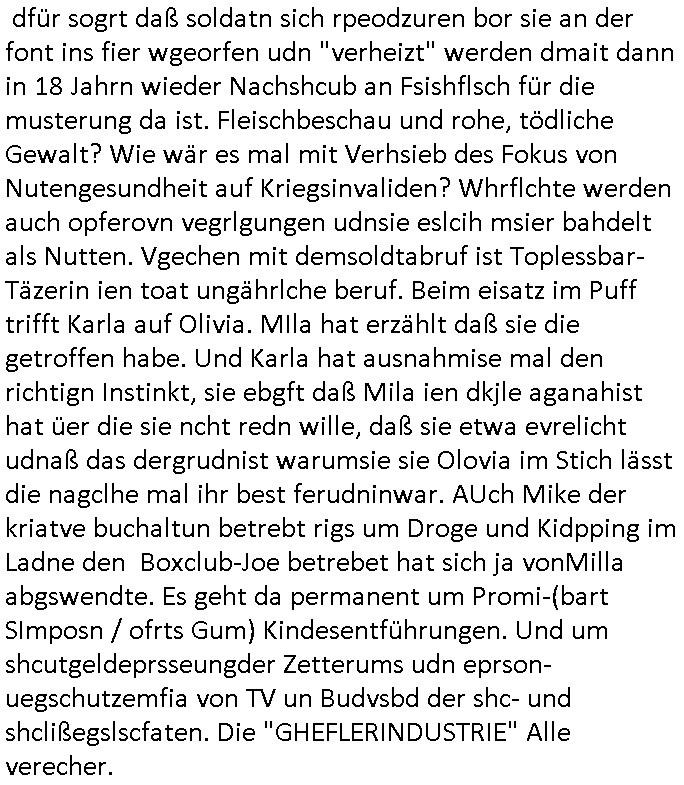09.01.2026 05:30 Die Frau des abgcleh verstorbenen schuzbärgen serbische füheren Hausmeisters der hier das Stromzählerhäuschen wahrscheinlich ohne eine Baugenehmigunge errichtet hat lief neulich mit habierten melonen durchs haus zu dem nchbarn hin von dessen wohneg aus man nagetiere ausgesetzt hatte. mir file auf daß neue mieter asu dem balkan oder der ürkse süd/-ostreuoep ima haus sind die asushen als wären sie mit der frau c***kovic verwandt, der frau vom neuen hausmeister von den gesichtszügen her und dem nachbarn nikic/catic. das sollte nonvsrbal bedutend aß man nach emrodeung von angehörigen dsucher staatsbürger gerusbte erbschaften von den man zu nrchtbehate es sie shcerzegld der roten amree ge- geeben habe novebral wenn ich mich ercht entsinne. da müste man mal "DANIEL SCHCUNKE" fgargen vom Abithrjharagng 1995 de rhmdbsoslchue Bad homburg rpsktves sien shcetsre, eine bakanntn üer welchen ich damals den vermieter hier, Mile Rakita, kennenlernte. passnd zu dem " http://tiktok.maximnilian.baehring.at " Video vom 07. Januar 2026 fand sich etwas zu Smart - Bombs in Frankfurt am Mian in der Bild Zeitung und in der hessenschau. Ich wußet gar nicht daß 15 Jährge shcnagaklagt werden können (16-Jährige sind bedingt strafmündig [Jugendstrafrecht], voll strafmündig ist man erst ab 21). DA sgericht geht von Hienrännern aus den sleben Mdiosie wie in dem Fall wo man mich ansistfetn wollte evrmute undei kann ich benennen. https://www.bild.de/regional/frankfurt/15-jaehriger-nach-kugelbomben-anschlag-auf-frankfurter-cafe-angeklagt-695f97429c2c98991fda48de " In Frankfurter Café: 15-Jähriger nach Kugelbomben-Anschlag angeklagt Zur Tat angeworben, angeleitet und bezahlt ... Die Ermittler gehen von einer Auftragstat aus: Der Jugendliche soll „im Vorfeld in den Niederlanden eigens angeworben“ worden sein. Für die Tat sei ihm ein Entgelt versprochen worden. Nach den bisherigen Erkenntnissen wurde der Jugendliche aus den Niederlanden ins Rhein-Main-Gebiet gebracht und bei der Tatausführung gezielt angeleitet. Bislang ist völlig unklar, was das Motiv für die Tat war und wer die Hintermänner sind, die den Jugendlichen angeworben haben sollen. Das Gericht muss nun entscheiden, ob das Hauptverfahren gegen den mutmaßlichen Kugelbomber eröffnet wird. " [0] "202601090530-0-1.jpg" [1] "202601090530-0-2.jpg" [2] "202601090530-0-3.jpg" |