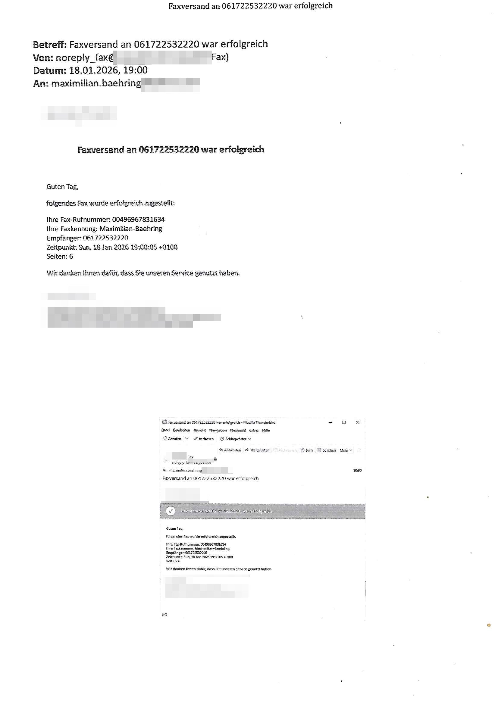 18.01.2026 08:15 http://blog.sch-einesystem.de ( http://banktunnel.eu/pdf.php ) Maximilian Baehring Hoelderlinstrasse 4 D-60316 Frankfurt/M vorab per Fax: +49/(0)69/567006-99-892 Jobcenter Frankfurt am Main Zentrale z. Hd. Frau Behrami Darmstädter-Landstraße 119-125 D - 60598 Frankfurt am Main Frankfurt am Main, 18. Januar 2026 Ihr Zeichen: 8KRM - BG - Nummer: *** ( Kundenummer: *** ) antwortend auf Schreiben vom 11. Januar 2026 mit „mein Zeichen RN1899474“ Ihr Schreiben „Ihre Nachricht vom 11.01.2026“ datiert auf „14. Januar 2026“ frankiert am 16. und hier eingegangen gestern, 17. Januar 2026 ca. 13:45 Uhr „Eingangsbestätigung“, 1 Blatt (nur vorderseitig, farbig, bedruckt), 1 Seite Sehr geehrte Frau Behr-ami! Am gestrigen Samstag den 16. Januar 2026 habe ich nachmittags Post von ihnen in meinem Briefkasten vorgefunden, das im Betreff vorbezeichnete Schreiben, darin teilen sie mit daß sie Nachricht vom „11.01.2026“ von mir erhalten hätten. Dabei könnte es sich um Korrespondenz meinen den Weiterbewilligungsantrag 2026 betreffend gehandelt haben. Alle diesbezügliche bei mri agshende Post zwischen dem 05. Januar 2026 und 15. Januar 2026 habe ich aber direkt an das für mich zuständige Jobcenter, Ferdinand-Happ-Sraße 22, D-60314 Frankfurt am Main gesendet und meist sicherheitshalber zum Deutsche Post Einschreibebrief (Einwurf) noch vorab per Telefax an die +49/(0)69/567006-99-892 . Keine der Postsendungen war an Frau Behrami, Darmstädter-Landstraße 119-125 D-60598 Frankfurt am Main gerichtet und keine trug ein DIN5008-Diktatzeichen „RN 18999474“ auf daß welches sie sich aber beziehen. Die „vorab per Telefax“ Versionen der Schreiben enthielten von den Kontoauszügen und Mietvertragskopien aus dem dicken Umschlag den ich postalisch versendet habe nur Miniuaturen/“Thumbnail“-Vorschaubilder da der Umfang der Fax-Sendung sonst die Grenze von 20 Seiten gesprengt hätte aus den Miniaturansichten lässt sich aber auf den Umfang und Inhalte der auf den Weg gebrachten Unterlagen/Anhänge rückschließen. Obwohl ich stets vorwarne daß es sich um Miniaturansichten der Unterlagen handle die „in größerer, lesbarer Form“ postalisch unterwegs seien erhalte ich nun iederholt die Aufforderung alles nochmal „in lesbarer Form nach-zureichen“. Daher hab ich mich wie schon im letzten Jahr persönlich auf den Weg gemacht und bin mit Kopien des per Einschreiben versendete dicken Umschlags mit den vollständigen Unterlage/Anhängen die ich nochmal ausgedruckt habe slbst ud in Person zum Jobcenter, Ferdinand-Happ-Sraße 22, D-60314 Frankfurt am Main gegangen am 15. Januar 2026 und man hat mir dann dort bei der Entgegen-nahme gleich zwischenzeitlich wohl erfolgten Weiterbewilligungs-Bescheid datiert 14. Januar 2026 aks „Zweitschrift“ in die Hand gedrückt mit der Info der sei in seiner endgültgen Fassung mit der Post zu mir unterwegs. Neben dem Schreiben von ihnen hab eich tatsächlich gestern dann auch noch den Bescheid als weitren Brief den ich gestern von „Jobcentern“ erhielt, hier dem Jobcenter, Ferdinand-Happ-Sraße 22, D-60314 Frankfurt am Main im Posteingang gehabt. Damit ist alle von mir versendeten Korrepondenz vom 05. Januar 2026 bis 15. Januar 2026 die an Jobcenter gerichtet war (Weiter-bewilligung 2026) erledigt. Ich danke/verbleibe mit freundlichen Grüßen [0] "202601180815-0-1.jpg" |