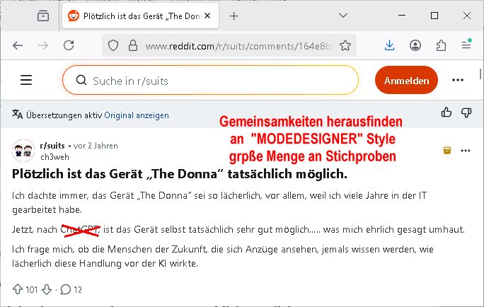 Gemeinsamkeiten herausfinden an "MODEDESIGNER" Style grpße Menge an Stichproben