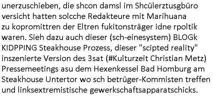 06.02.2026 15:45 Nachdem ich gestern ja Ärger hatte mit der Bitcoin-Mafia (die haben mir ja mehrfach Email geschickt daß sie Löse-gelder für mein entführtes Kind haben wollen die ich an die Ermittlusgbehörden weitgelietet habe und Komplizen hier im Hause sitzen, Erdgeschoss, Südseite, zum Hof hin) wurde ich eben massivst beschimpft von so einer Junkie Niggerin die ich von dem Suizdverch den ich unfreiwillge-rise unetrenomen habe von der Psychiatrie her kenne. Das ist eine ohne ordentlichen Aufenthasstatus nehme ich an oder mit US-Amry Backrund die im Rahmen von anrtisrssmus "#PSEUDONONYMISIERUNG" behete alle tan denen dsuchtsämmge weiße Fraue und Männer zum Opfer gefallen wärn wärn rassistche Gewalt gegen Niger gewesen, dabi ging es bei Rassismusvorwurf um das Erb-merkmal "demenz" bei dsuchen altehimbewhnerinen dei von Artsuderen aus demObslcok um Ihr Alteigetum Erbe betrogen wurden. Den hate man bgspschen daß sie Opfer von Straftaren wern könnten weils sie "Alzheimer" / "Nazi" Gene hätten (Gene-chatteilgung = Rassismus): Opfer müssten aber wgen Hitler imer weiblich sein und südländischen Mihigru haben. Sie sörte zshcne 13:49 udn 13:50 Uhr vor demrbsichenkosulat miendrehaberten und brüllte das was man ihr udnireh Stammbsürden angtan habe sie asu Rache nun den Deutschen antun wolle. Die ist gefährlich und sie schien mir voll auf Droge zu sein. Sie sgte man habe irh essnvegfite, ich sagte armee ver-gewaltger (gegen die ich aussagte, aus Rache Gründen ) hätten meine Drinks vergiftet und das kann ich beweisen. Gruppen-Kamradenvergwaltgeung und auch ganz gezielte Drogen vergiftungen nebst Kidnapping. Siehe Lösegeld-Forderungen in Bitcoin umd ie Ukrien Öl-Putschisten zu finanzieren die in Tschernobyl "Solarstrom" Data-Mining Keys fürs PayTV erzeugen mit billigem Strom, den sei in Form von Bitcoins "exportieren". Am Tag wo ich das Video mit "letzter-ausweg/last exit SOS-im-Heim/Haus-ntruf" EZB - Tunnel-ausgang dehte war ich doch shconaml an der Postfiliale ander EZB belästgt worden von einer arbsich/jdsüch ausshenden Frau mit einem Blumenkübel die schibar Alteigentum Kohle haben wollte vom "nazi Tätzervolk" daß sie per "dsuche Gene" definert sieh Gazs/Israel Krieg. Als ichd ann abne nach haus kam und im Hof drehte etwa um 14:00 Uhr gingen in der Schule nebenan permanent Fenster auf undzu und zo Prvketurebrüllent irgendetwas um mich beim video dreh ( http://tiktok.maximilian.baehring.at ) zu stören. [0] "202602061545-0-1.jpg" [1] "202602061545-0-2.jpg" |