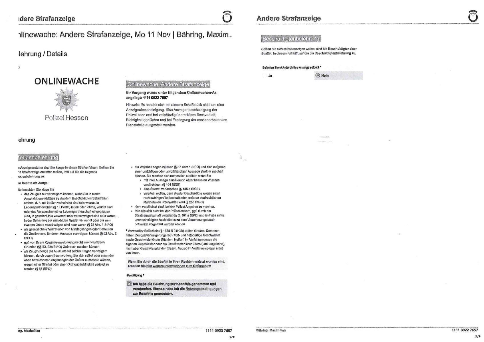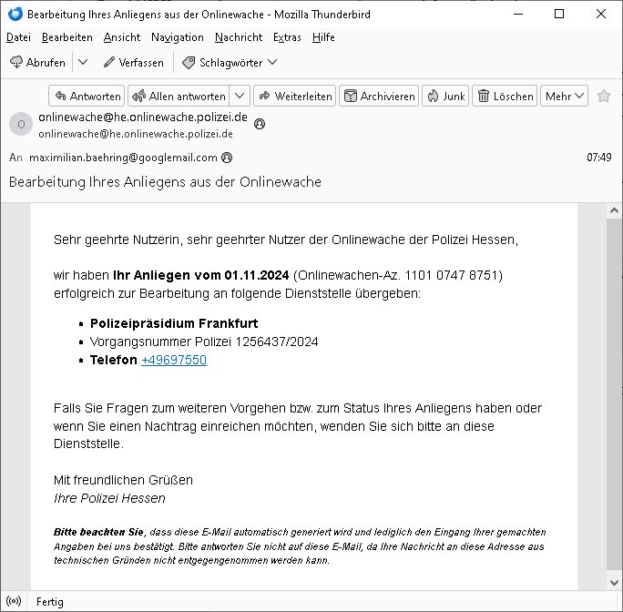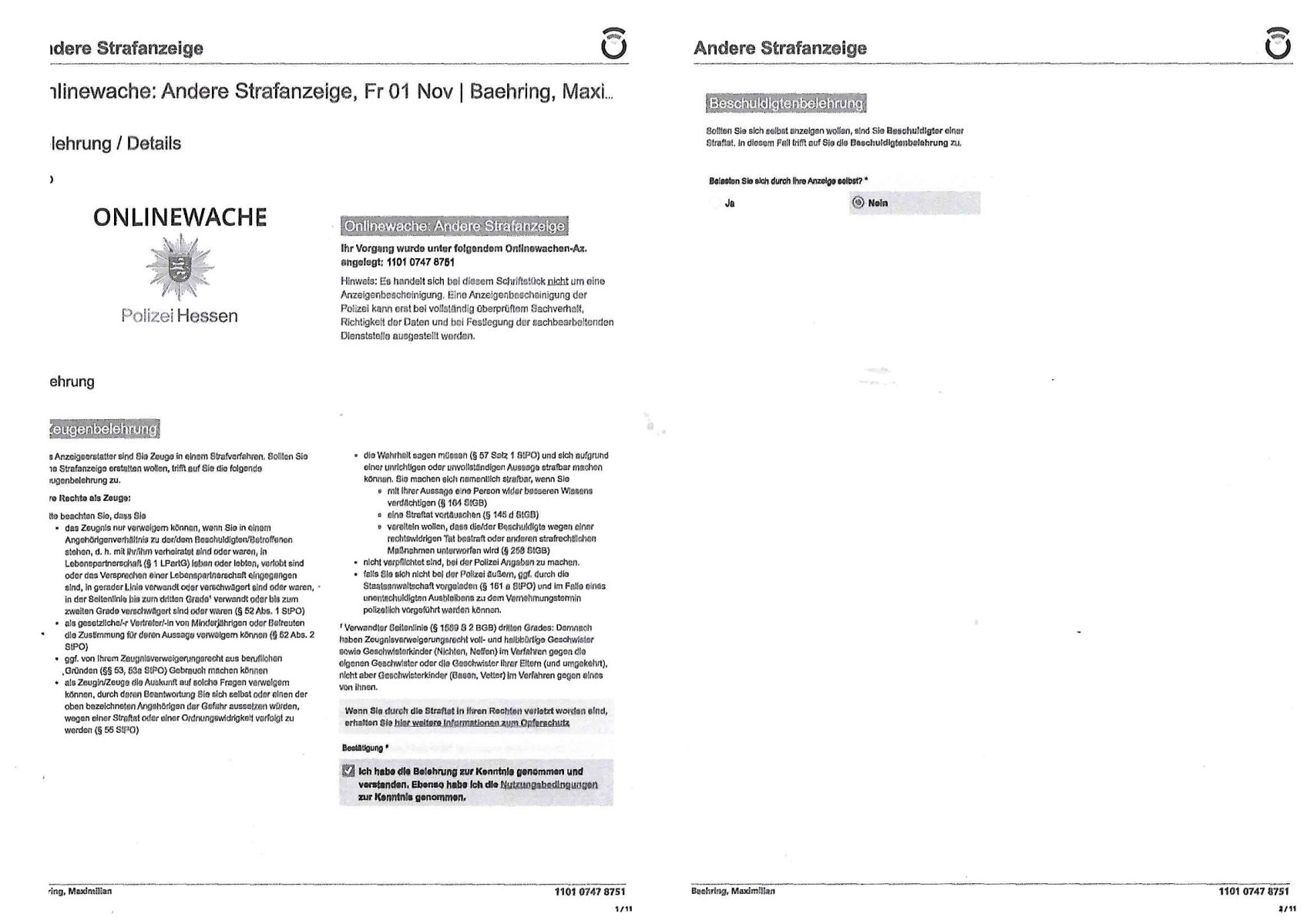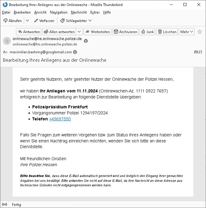 | 1 / 11 Onlinewache: Andere Strafanzeige, Fr 01 Nov | Baehring, Maxi …