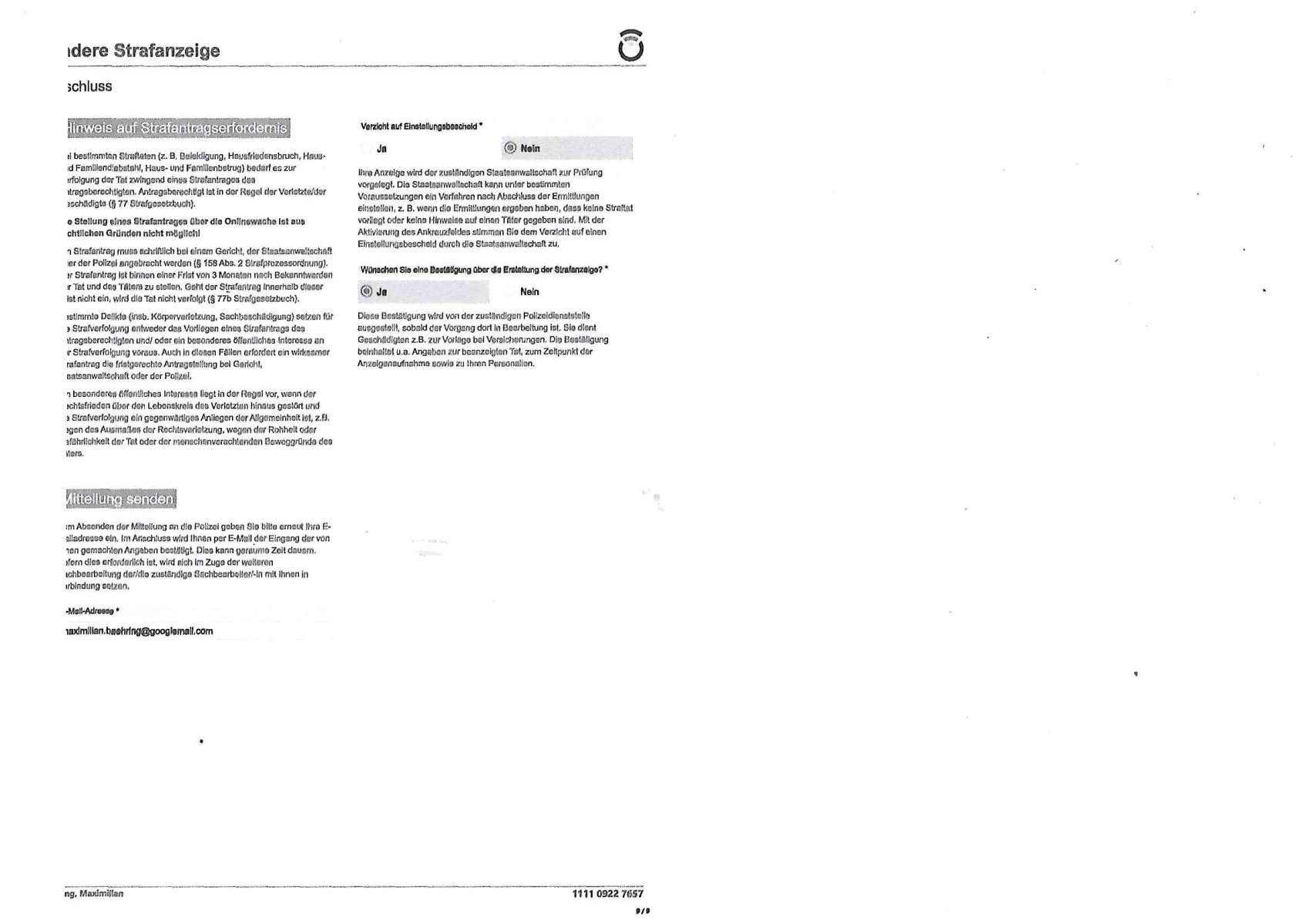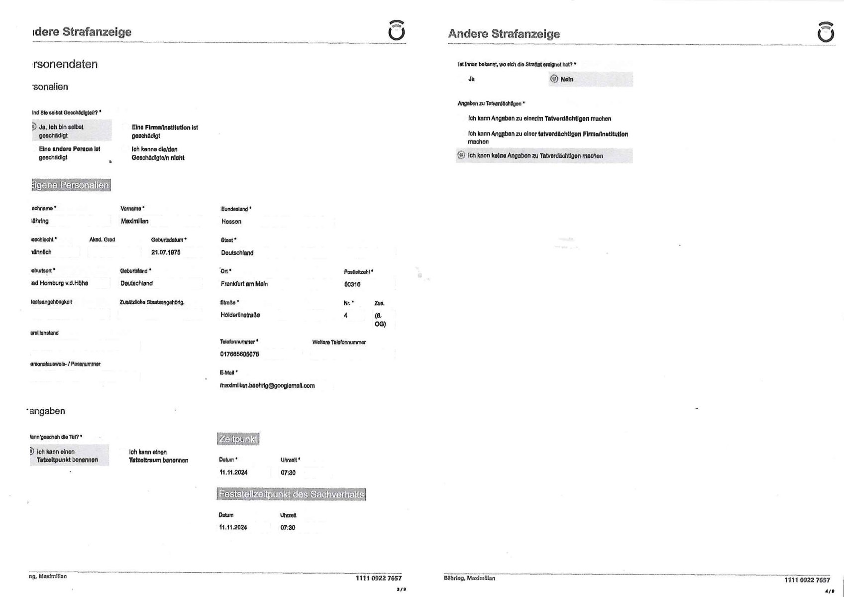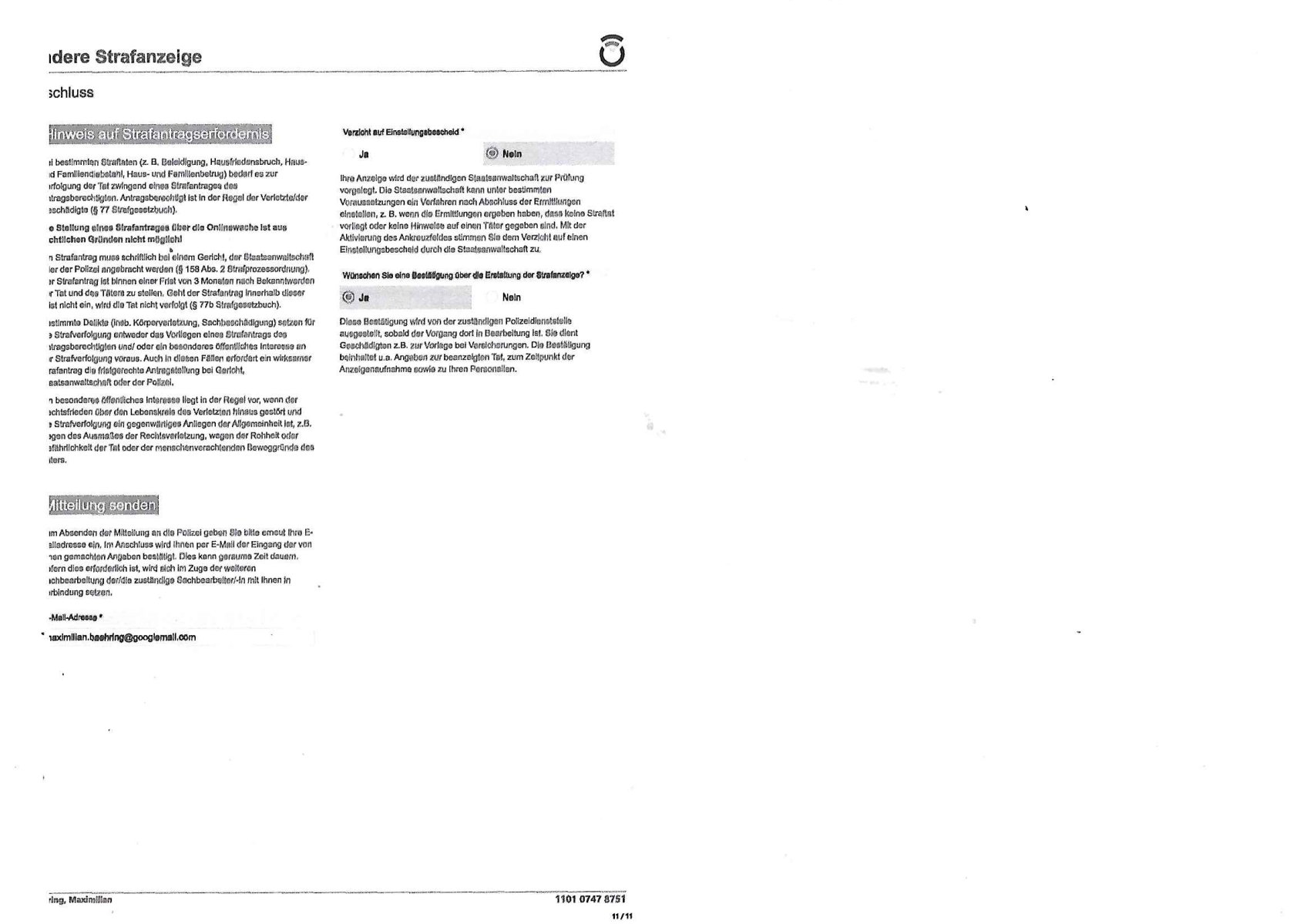 | 1 / 11 Onlinewache: Andere Strafanzeige, Fr 01 Nov | Baehring, Maxi …