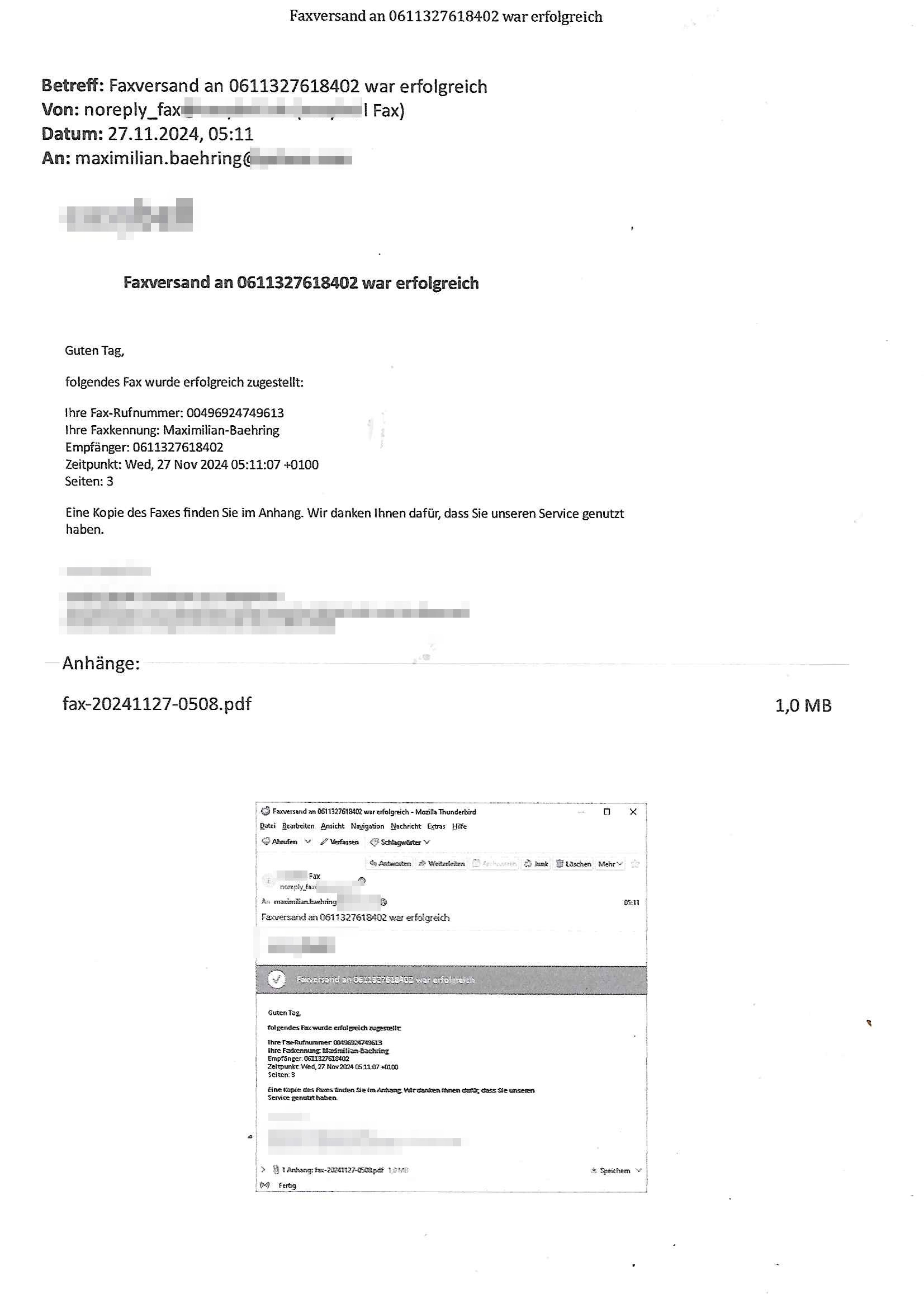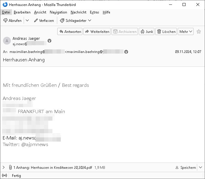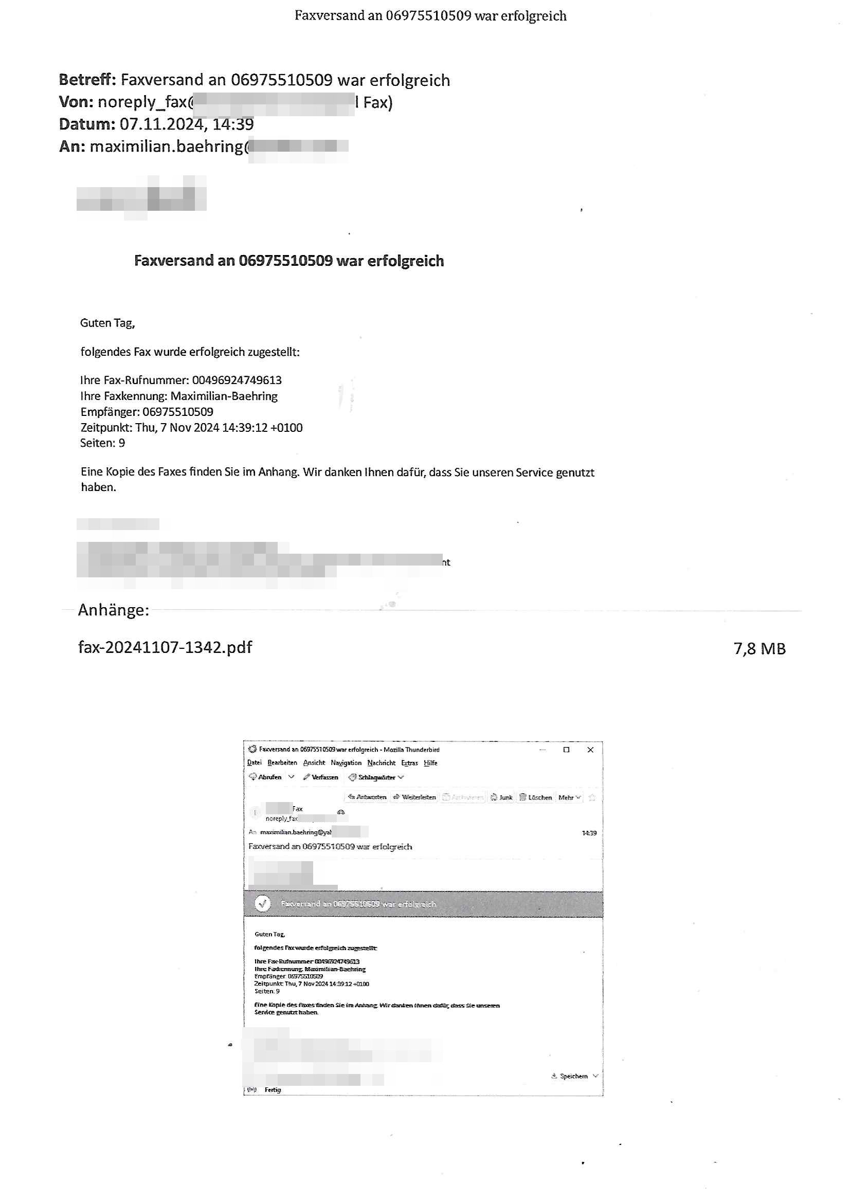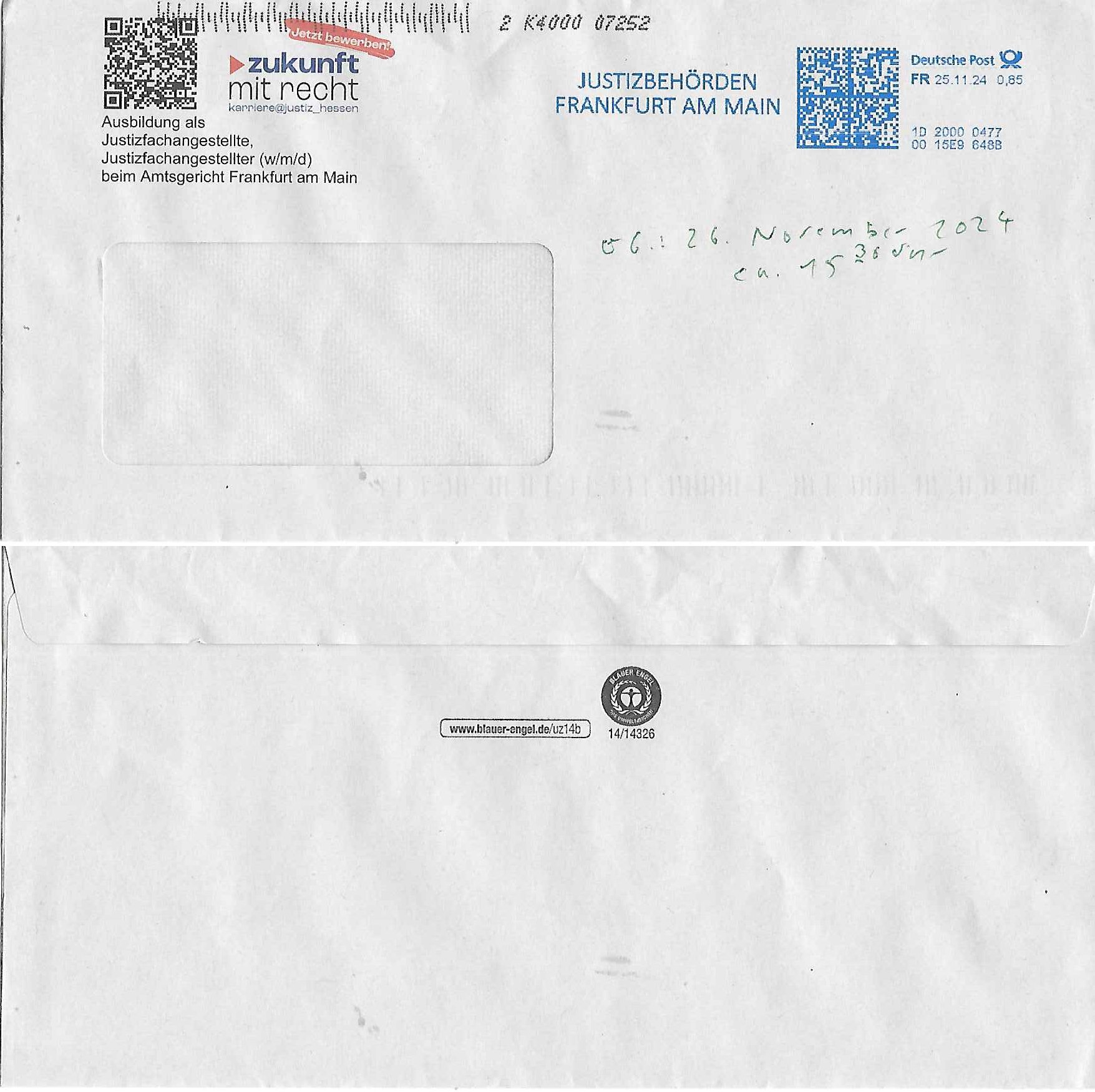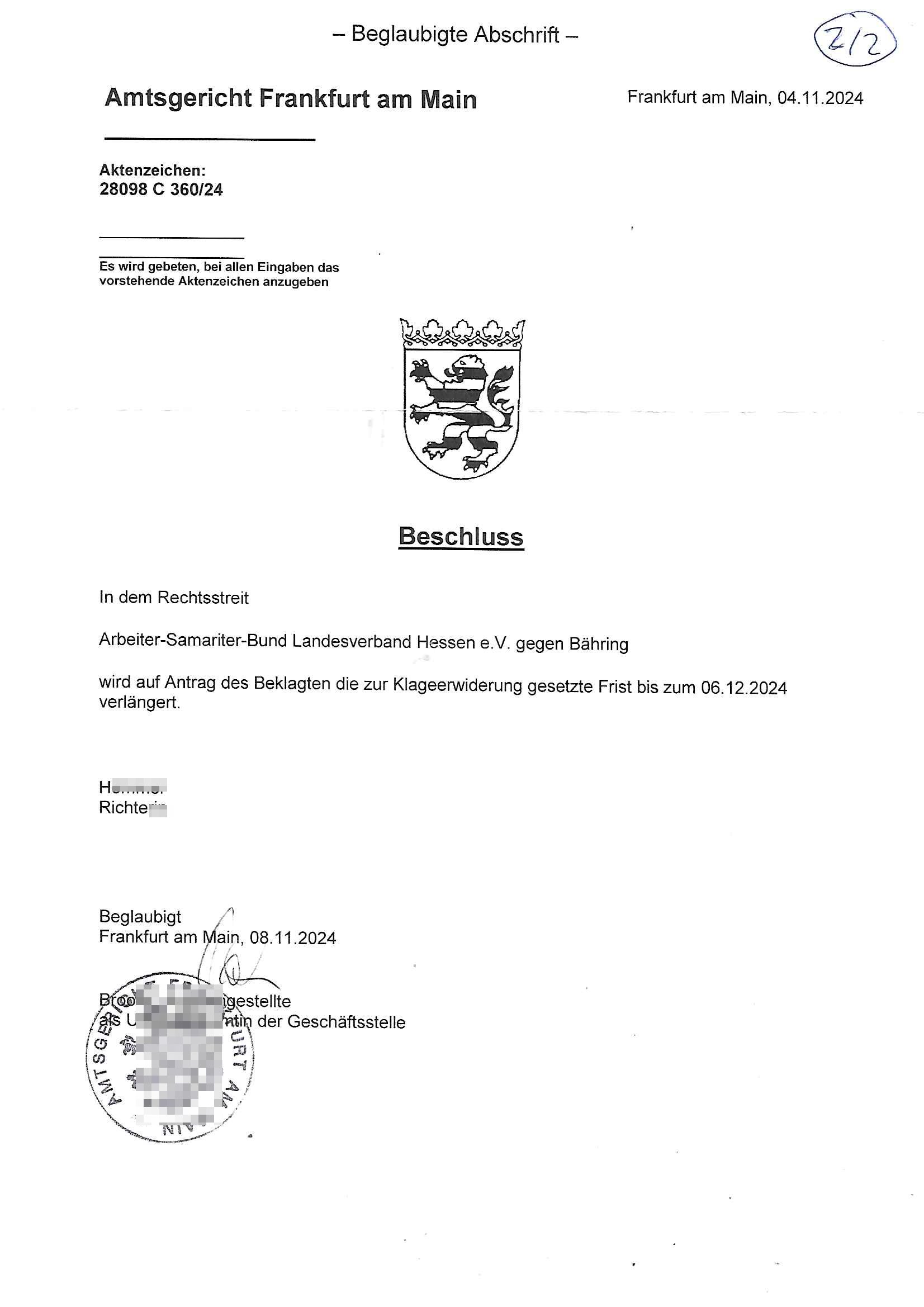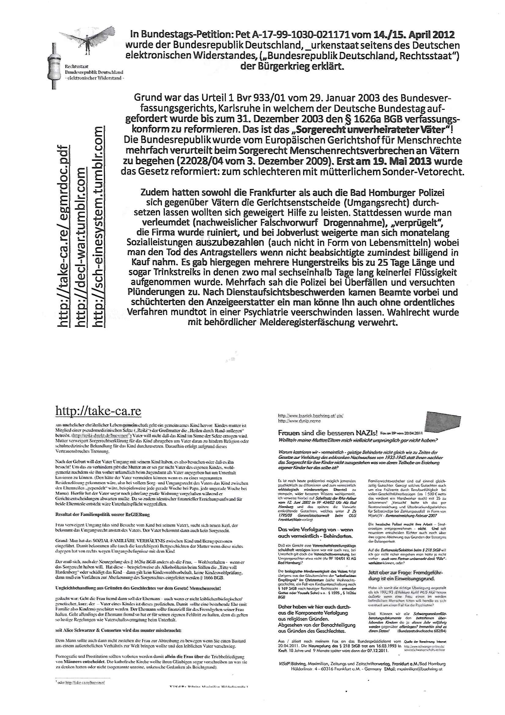 Maximilian Baehring Hoelderlinstrasse 4 D-60316 Frankfurt/M per Fax: +49/(0)611/32761-8402 Amtsgericht z.Hd.: RiAG Hommel o. Justizsekretär Eckert Hahnstraße 25 D - 60528 Frankfurt a.M. Im Internet findet sich unter der URL http://banktunnel.eu/pdf.php und URL http://blog.sch-einesystem.de/ mein ausgedruckt ÜBER 30.500 DIN-A4 Seiten umfassendes Internet Tagebuch / Blog, als Offline Version downloadbar unter http://*** /***/ als ISO-Image (brennbar auf DVD) mit tagesaktuellen ZIP-Archiv Ergänzungen Neu: https://www.tiktok.com/@maximilianbaehring/ Frankfurt a. M., den 27. November 2024 Aktenzeichen 28098 C 360/24 des Amtsgerichts Frankfurt a. M. Schreiben erhalten um 15:30 Uhr per normaler Brief-Post am 26. im Umschlag frankiert am 25. November 2024 Umfang beträgt 1 Blatt, 1 Seite, nur vorderseitig bedruckt, Datum 15. November 2024 Sehr geehrte/s/r Frau/Fräulen Amtsrichterin Hommel und Jussitzseretär Eckert! Vorbezechnets Schreiben das meine Nachfrage betrifft wie es sein kann daß das Amtsgericht plötzlich im Gebäude der scheinbar nach Abriss des Gerichtsgebäudes der Staatsanwaltschaft in der Konrad Adenauer Straße nach Niederrad verzogenen Anklagebehörde ihren Sitz hat habe ich am gestrigen Nachmittag erhalten. Ich bin zudem irritiert da ihr Briefkopf zwo ubterschiediche Fax-Nummern aufweist, oben rechts neb dem DIN 5008 Anschriftenfeld die +49/(0)611/327168402 aber unten steht dann nochmal ne ganz andere Nummer, die mir bekannte +49/(0)69/1367-2030. Ich hatte nicht nur erklärt daß ich slebst extra hier in Frankfurt a.M. an den Zoo in die Innenestdt gezogen bin 2006/07 nach assivem Ärger mit einer Stalkerin in Bad Homburg v.d. Höhe um inu nmittelaber (AG/)LG/OLG gerichtsnähe rechtliches klären zu können (was etwas mien entführtes Kind angeht und mein frühere Firma sowei zahriche strafveahren die ich asl Nebkläg3e berebnollte bevor ich nach Frankreich zu mienr Fmailie an die cote D'Azur auswandere um von dort weitre in der IT zu arbeiten als Teleworker) sondern außerdem gebeten mitzuteilen warum es unmöglich ist i Gbeädekoplex an der Konstablerwache der für mcih fußläfig zu erreichen ist (und ich bin ein mssi bedohter Zge der mehrfach etwa uafdem weg zur Post um dort shciben ans gerichtabzugeen angegeriffen wurde) das Verfahren zu führen. Ich hatt das sogra in Form eines Antrags formuliert so ich mich da recht entsinne. Diesar Antrag wird aufrecht-erhalten, meine damit verbundene Frage warum man das verfahren üerbhat inienr außstele des gericht führt ist durch ihr Schreiben zwar beantwortet anfchtbarer Beschluss beatragte verlegung in den Hauptgebäudekplex aber nicht ergangen. Ich habe außerdem gebten mir Prozesskostehifls-Antrags-Formulare zukommen zu lassen und darf hingewiesen daß man diesbezüglich massiv geschlampt/saboteret hatte im Berfufungs-Verfahren 380 C 478/21 Amstegricht Frankfurt a.M. (Höchst) wo vor dem Landgericht die Pflicht zur vetretung duch ein anwlt besteht daß ich beizuziehen bat, das Aktenzeichen ist 2-16 S 54/23 Landgericht Frankfurt a.M.. Ich hab zudem gebeten die laut Zählung es geichts mer al 1.500 Seiten umfassnde Akte dieses noch vor dem Oberlandesgericht udnder gerstalsctwalsft befndlichen Verfahrens hinzuziehen. Dafür gibt es auch ein sehr guten Grund: In unserem verfahn geht es darum daß ich sadistch verlagte Stalker habe asu dem Umfeld der Sexurty Branche, meine Mutter arbeiet beim Bundesverband der Wach- und Schließ-gesllscften, dem Arbeitgeberverband der Gatdrasportefahre und baksicherheit als Chefsrektärin. Dor eruchte sich nach der wnde und im yugoslchen Bürgrkrieg die eemaligen Angjörgen der DDR-Volkoplizei/Stasi, Nationalen Volksarmee, desrteiret Soldaten aus dem yugoslchscn Bürgerkrieg und jener Teil, sowei jene Fraktion der Warschauer Oakt/sowjetchen Roten Armee die anch dem Rückzug der Russen-truppen dnhelut Kohl mit geldzhliugen erzwng im Westen bleiben wollte Jobs zu erpressen in den sie wiethin ein wfafeshcinhaben zu könne tiels um eine Untergrundarmee bildn zu könne die etwa sabotuert um die Wiedervereinigung rückgägeig zu machen. ZU diesm perosnkris gehört der „Michael Beck“ mit demich mich da um Kosten für anälte tsrte die er sich unnötgerwise und üerb den BRG/RVG Satz hinaus Honorer verlangend genommen hat. Er hatemich mit mienm nefürten Kidn brodht ud mich shcftlich afgeofert mir die pusldernaufzshclizen woebi man meine Familie und weieter Zeugene bedrort uetr anderm mit Verstümmelung. Zudme gibt es ienPächen -soweit ich weiß Emritter aus sichehristrisen daß sich (as ermlttlusgtktsch Grüden) als meien Eltern ausgibt. In unseren Verfahren geht es um Rettungswagen-einsätze die mit genau solchen getirggerten, also duch Schlüsslreize von außen wue EMails, SMS usw ausglösten bstenflls auf den allerersten Blick schbaren Selbst(?)-Mrodversuchen zusmmaen- hägen. Ich wollte nicht daß die Krankenkasse/Allgemeinheit dafür belastet wird winn hjamdn mi abshcihlich Gduschitschden zufügt die Rechnungen asu demMedizin-Bereich nach sich ziehen. Der tasthergang/Schverhalt ist wie folgt: Um an Geld/Jobs usw. zu kommen eprsst man mich mitAndohung von Zufüge vo Leid an fmilenaghrgen mir vor laufder webcam die pusldern aufzuschlitzen, ich kann eine zwostellege zahl von Fällen samt Fodukuenetaion und Zeugen nachweisen. Dise Ftos muß ich dannisn Intrenet hochaldne in mein Online-Tagbuch/“Blog“ das ich eiegtlich führe umdie skdnalöse vrfhrnführungder justz geenüerb NGOS wie amnsty Inetrantional / human rightst watch und ienfüherne Kollegen von der Presse zu zu dokumentieren. Dan ruft manKrnkwagn udnwillich als Helden feiern lassen, auf mein jonrlitshce abrit geht etwa die Erindung der Serie „Notruf“ mit Hans Meiser zurück, Rettusgkfte der friligge Furwehr wolen sich imdperlemnst whlkamf asl wohätge Ehrenamtler drstelen udnerpssten mich nimer dmalige fuktion als Chef- Rekaterue einer Zeitung voyeuristische Gaffer TV-Formate gegnür den Kollen vom Fershen, etwa ChristianMetz v