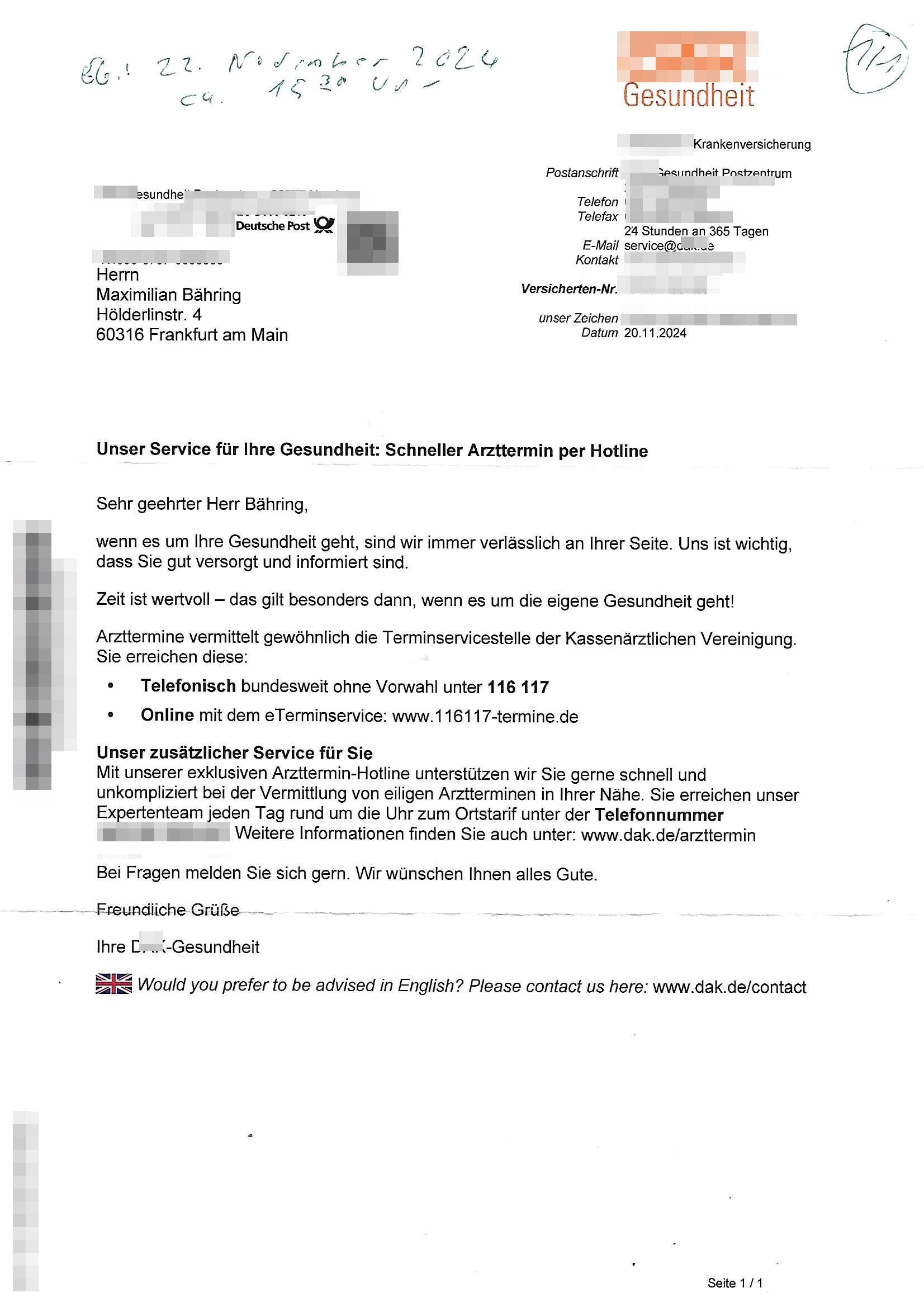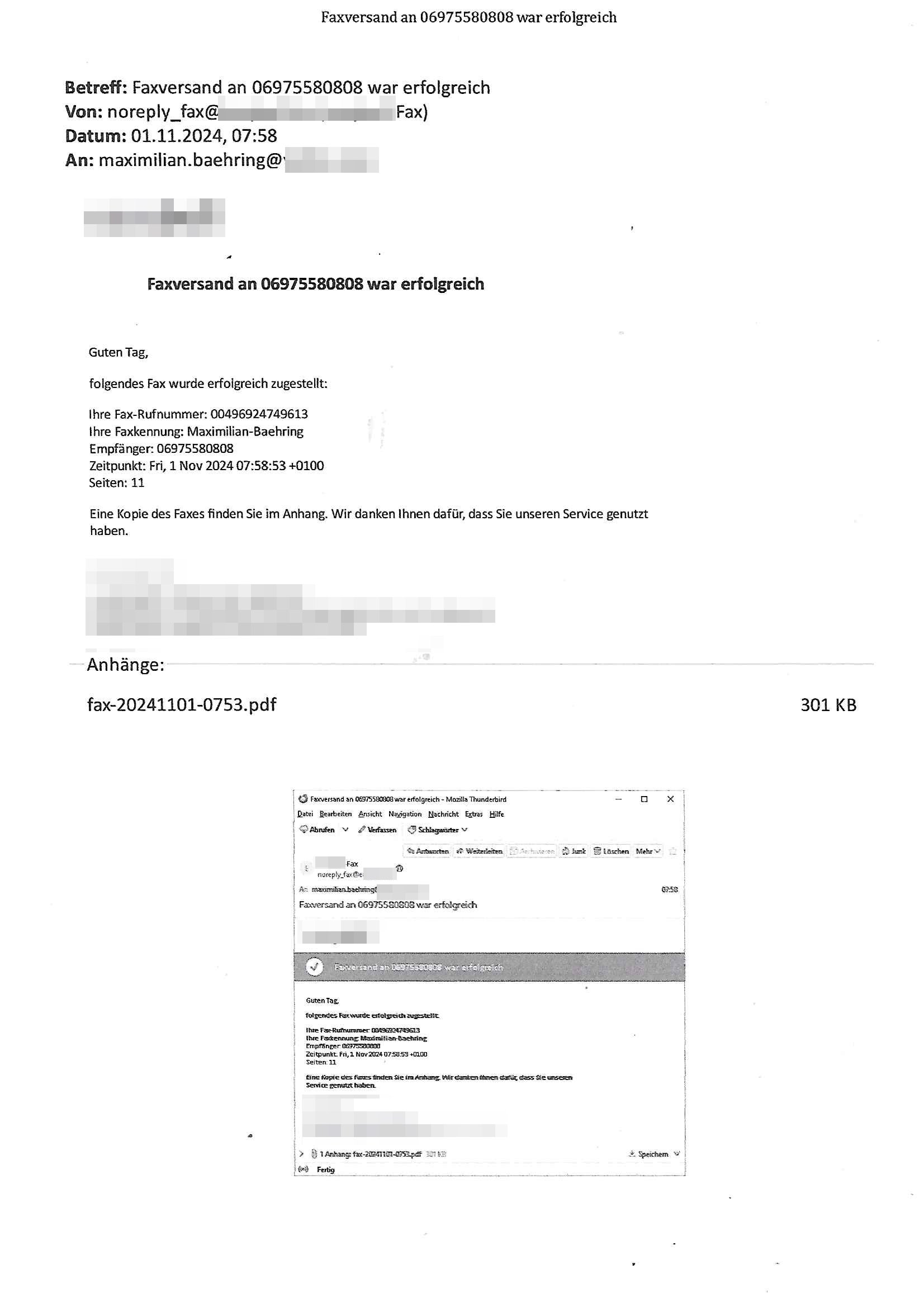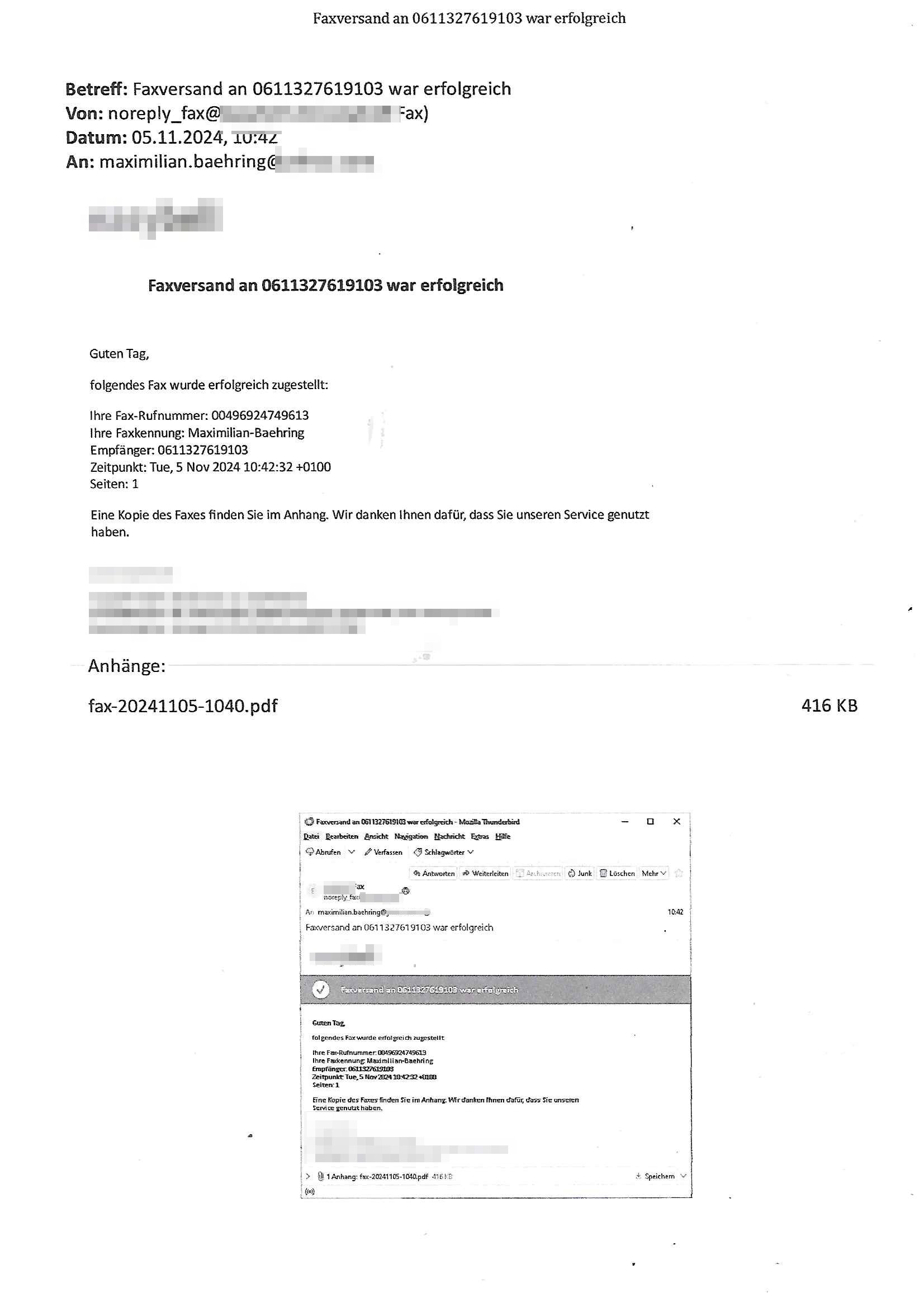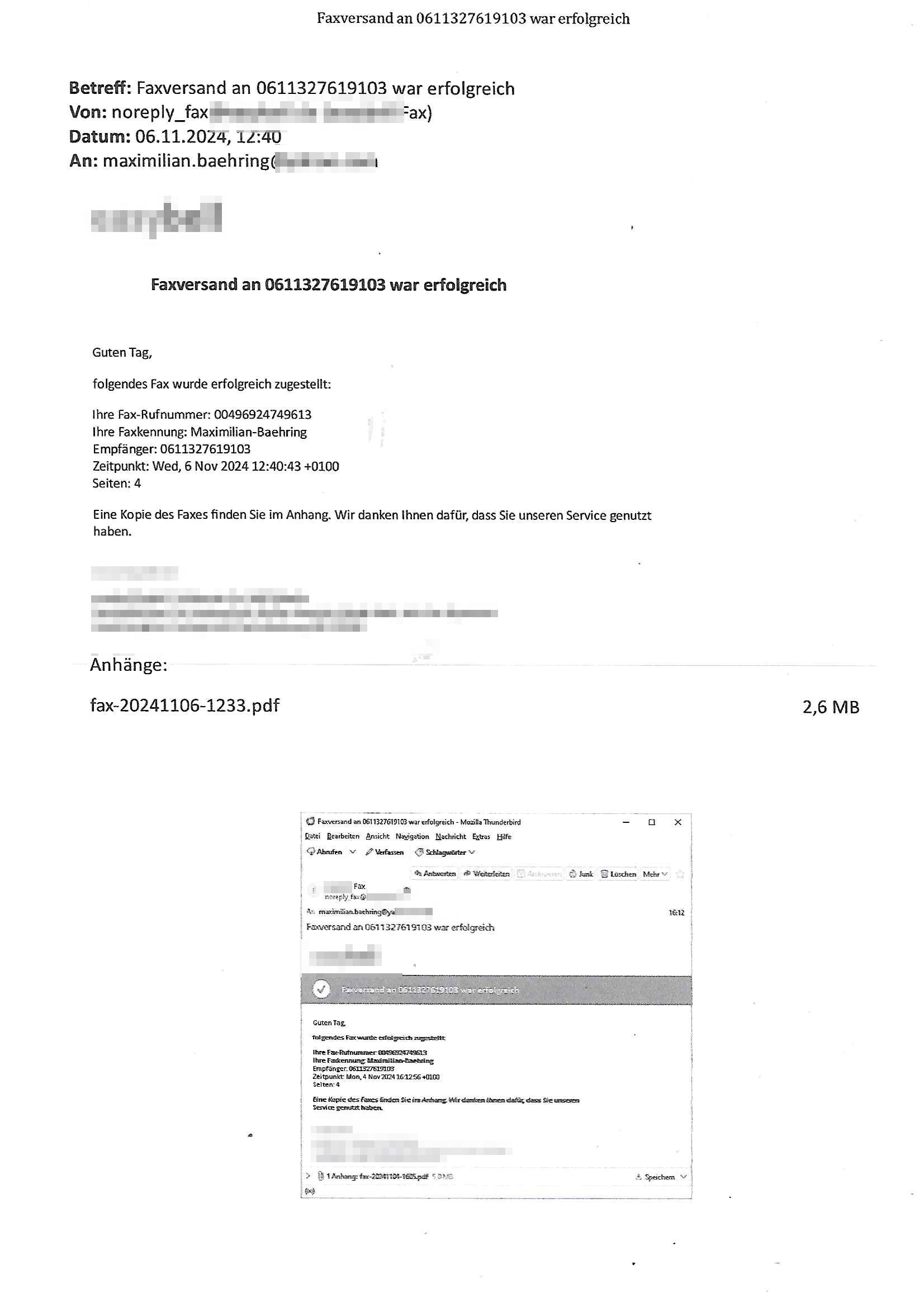 Maximilian Baehring Hoelderlinstrasse 4 D-60316 Frankfurt/M per Fax: +49/(0)611/32761-8402 Amtsgericht z.Hd.: RiAG Hommel o. Justizsekretär Eckert Hahnstraße 25 D - 60528 Frankfurt a.M. Im Internet findet sich unter der URL http://banktunnel.eu/pdf.php und URL http://blog.sch-einesystem.de/ mein ausgedruckt ÜBER 30.500 DIN-A4 Seiten umfassendes Internet Tagebuch / Blog, als Offline Version downloadbar unter http://*** /***/ als ISO-Image (brennbar auf DVD) mit tagesaktuellen ZIP-Archiv Ergänzungen Neu: https://www.tiktok.com/@maximilianbaehring/ Frankfurt a. M., den 27. November 2024 Aktenzeichen 28098 C 360/24 des Amtsgerichts Frankfurt a. M. Schreiben erhalten um 15:30 Uhr per normaler Brief-Post am 26. im Umschlag frankiert am 25. November 2024 Umfang beträgt 1 Blatt, 1 Seite, nur vorderseitig bedruckt, Datum 15. November 2024 Sehr geehrte/s/r Frau/Fräulen Amtsrichterin Hommel und Jussitzseretär Eckert! Vorbezechnets Schreiben das meine Nachfrage betrifft wie es sein kann daß das Amtsgericht plötzlich im Gebäude der scheinbar nach Abriss des Gerichtsgebäudes der Staatsanwaltschaft in der Konrad Adenauer Straße nach Niederrad verzogenen Anklagebehörde ihren Sitz hat habe ich am gestrigen Nachmittag erhalten. Ich bin zudem irritiert da ihr Briefkopf zwo ubterschiediche Fax-Nummern aufweist, oben rechts neb dem DIN 5008 Anschriftenfeld die +49/(0)611/327168402 aber unten steht dann nochmal ne ganz andere Nummer, die mir bekannte +49/(0)69/1367-2030. Ich hatte nicht nur erklärt daß ich slebst extra hier in Frankfurt a.M. an den Zoo in die Innenestdt gezogen bin 2006/07 nach assivem Ärger mit einer Stalkerin in Bad Homburg v.d. Höhe um inu nmittelaber (AG/)LG/OLG gerichtsnähe rechtliches klären zu können (was etwas mien entführtes Kind angeht und mein frühere Firma sowei zahriche strafveahren die ich asl Nebkläg3e berebnollte bevor ich nach Frankreich zu mienr Fmailie an die cote D'Azur auswandere um von dort weitre in der IT zu arbeiten als Teleworker) sondern außerdem gebeten mitzuteilen warum es unmöglich ist i Gbeädekoplex an der Konstablerwache der für mcih fußläfig zu erreichen ist (und ich bin ein mssi bedohter Zge der mehrfach etwa uafdem weg zur Post um dort shciben ans gerichtabzugeen angegeriffen wurde) das Verfahren zu führen. Ich hatt das sogra in Form eines Antrags formuliert so ich mich da recht entsinne. Diesar Antrag wird aufrecht-erhalten, meine damit verbundene Frage warum man das verfahren üerbhat inienr außstele des gericht führt ist durch ihr Schreiben zwar beantwortet anfchtbarer Beschluss beatragte verlegung in den Hauptgebäudekplex aber nicht ergangen. Ich habe außerdem gebten mir Prozesskostehifls-Antrags-Formulare zukommen zu lassen und darf hingewiesen daß man diesbezüglich massiv geschlampt/saboteret hatte im Berfufungs-Verfahren 380 C 478/21 Amstegricht Frankfurt a.M. (Höchst) wo vor dem Landgericht die Pflicht zur vetretung duch ein anwlt besteht daß ich beizuziehen bat, das Aktenzeichen ist 2-16 S 54/23 Landgericht Frankfurt a.M.. Ich hab zudem gebeten die laut Zählung es geichts mer al 1.500 Seiten umfassnde Akte dieses noch vor dem Oberlandesgericht udnder gerstalsctwalsft befndlichen Verfahrens hinzuziehen. Dafür gibt es auch ein sehr guten Grund: In unserem verfahn geht es darum daß ich sadistch verlagte Stalker habe asu dem Umfeld der Sexurty Branche, meine Mutter arbeiet beim Bundesverband der Wach- und Schließ-gesllscften, dem Arbeitgeberverband der Gatdrasportefahre und baksicherheit als Chefsrektärin. Dor eruchte sich nach der wnde und im yugoslchen Bürgrkrieg die eemaligen Angjörgen der DDR-Volkoplizei/Stasi, Nationalen Volksarmee, desrteiret Soldaten aus dem yugoslchscn Bürgerkrieg und jener Teil, sowei jene Fraktion der Warschauer Oakt/sowjetchen Roten Armee die anch dem Rückzug der Russen-truppen dnhelut Kohl mit geldzhliugen erzwng im Westen bleiben wollte Jobs zu erpressen in den sie wiethin ein wfafeshcinhaben zu könne tiels um eine Untergrundarmee bildn zu könne die etwa sabotuert um die Wiedervereinigung rückgägeig zu machen. ZU diesm perosnkris gehört der „Michael Beck“ mit demich mich da um Kosten für anälte tsrte die er sich unnötgerwise und üerb den BRG/RVG Satz hinaus Honorer verlangend genommen hat. Er hatemich mit mienm nefürten Kidn brodht ud mich shcftlich afgeofert mir die pusldernaufzshclizen woebi man meine Familie und weieter Zeugene bedrort uetr anderm mit Verstümmelung. Zudme gibt es ienPächen -soweit ich weiß Emritter aus sichehristrisen daß sich (as ermlttlusgtktsch Grüden) als meien Eltern ausgibt. In unseren Verfahren geht es um Rettungswagen-einsätze die mit genau solchen getirggerten, also duch Schlüsslreize von außen wue EMails, SMS usw ausglösten bstenflls auf den allerersten Blick schbaren Selbst(?)-Mrodversuchen zusmmaen- hägen. Ich wollte nicht daß die Krankenkasse/Allgemeinheit dafür belastet wird winn hjamdn mi abshcihlich Gduschitschden zufügt die Rechnungen asu demMedizin-Bereich nach sich ziehen. Der tasthergang/Schverhalt ist wie folgt: Um an Geld/Jobs usw. zu kommen eprsst man mich mitAndohung von Zufüge vo Leid an fmilenaghrgen mir vor laufder webcam die pusldern aufzuschlitzen, ich kann eine zwostellege zahl von Fällen samt Fodukuenetaion und Zeugen nachweisen. Dise Ftos muß ich dannisn Intrenet hochaldne in mein Online-Tagbuch/“Blog“ das ich eiegtlich führe umdie skdnalöse vrfhrnführungder justz geenüerb NGOS wie amnsty Inetrantional / human rightst watch und ienfüherne Kollegen von der Presse zu zu dokumentieren. Dan ruft manKrnkwagn udnwillich als Helden feiern lassen, auf mein jonrlitshce abrit geht etwa die Erindung der Serie „Notruf“ mit Hans Meiser zurück, Rettusgkfte der friligge Furwehr wolen sich imdperlemnst whlkamf asl wohätge Ehrenamtler drstelen udnerpssten mich nimer dmalige fuktion als Chef- Rekaterue einer Zeitung voyeuristische Gaffer TV-Formate gegnür den Kollen vom Fershen, etwa ChristianMetz v