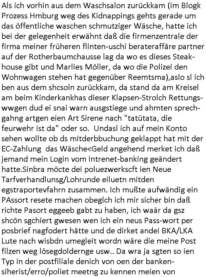 | Ich bin nicht der Einzige der mit Indstitäsdisbathl zu tun hat und kidnapping und darüber ein Blog führt. Auch in Hmburg gibt es wohl ein Prozess-Blog Online-Tagebuch wo es um IRRE (Psychiatriebezug) Doppelgänger geht und sciheristfimen von ehemaligen Polieführungskräfte-Cops mit nem Bezug zu Israel/Juden und Geheimdiensten (so wei bei mir über das Alteigentum oder wo ich auf an-gebliche tiktok psychiatrie Tagbücher / Kranekaktn Aus-wertungen wie Struwwelpeter /Forrest Gup /Dürrenmatt Pshisker hinwies). Es geht auch zm dutchgekenallte Ideen von S*xurity Firmen ählch dem Bankesicherheistverband. Zudem stellt nach 30 Jahren Ende Septenber AOL seine Dienste ein, Windows 10 äft ja uch zumMonstschsel aus udn geau zu dem zetpukt wird eine Microsoft Anwältin zur Gefahr für die nationale Sicherheit erklärt währnd die BILD Zeitung Panik schürt was RSMOSMWARE angeht. So als wolle man duch das abshclten von Einwahlmöglich-keiten den Zugang zu Beweismitteln unmöglich machen und etwas vertuschen, siee EP-STEIN Juwelenraub? Akte. Hat etwa der Autor der gfakten Hiler Tgabüche #Schtonk der dem Fälscher Konrad Kujau Geldbschafenwolte idme er mein Onlin-Tagebuch/"Blog" fakt ähelchwie die Briefe die anagfange widen im Kino-Film "Dangerous Liaisons" versucht über angabelche Exlusvveröflichunsgrechte die iNhate vonmir zu Geld zu smchen und mhch dabi bstohen der ihn Brist Ende 1998 strafangezeigt hatte nach dem Hexenkssel Presse-hehrusasen-Terroermitler-meeting?