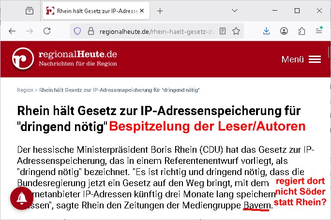 Und dann gabs noch so ien Brüller, a propos dem Murot #Tatort mit der Frau die mit einer Geisel aus dem Gericht flieht und dabei eine andershaarfarbige Perücke trägt. in irgendsoner #MorningShow lief ein ganz seltsames Bild von Prinz William und Kate wärhnd ich die Webcam neu ausrichtete am sich druch das Wäsche zum trocknen auf-hängen verschoben habenden Wäscheständer der neben dem Bett staht an dem die Webcam für allmorgentliche Sat1 Frühstücksfrehs Lebenszeichen Screenshots hängt. Das hat was damit zu tun daß ich ansonsten keinen Ort gefudne habe wo ich sie Stativ artog so befestigen kanndaß sie Höhe ungefährt stimmt Richtung RöhrenTVGerät. Es ist so oen Model daß man nomalerwise mit einem Clip an nem Bidlschrm befestigte für Videocalls daß übner nen billigst RasPI - Einplatinencomputer ins Intrenet geht. Das dist drkotolle pb maiNatz akteulle richbar ist. Ich kann das beispielsweeise einschalten udnineinEltor makt gehen wo man GAräte auspoberen kann und schauen ob das Webcam Bild des Fernsehen dort mit dem Bild das im Sat/Kabel/Terrestrischen Fernsehen ausgestrahlt wird übereinstimmt, so ne Art "Looking Glass"-"Restreamer". BEi so dubiosn Nachchten/Vorfaällen könnte es ja sien daß die bilder von Ki-Hackern nur auf meinen sabzrten Anschlüssen so ankommen so ich es nicht gegenchecke. https://banking.***bank.de/#/login https://www.hessenschau.de/panorama/uniklinik-giessen-polizei-erschiesst-patienten-mit-zwei-schuessen-v5,uniklinik-giessen-102.html https://www.hessenschau.de/kultur/hr-tatort-fuenf-drehorte-aus-murot-und-der-elefant-im-raum-v1,drehorte-tatort-murot-elefant-100.html https://www.rtl.de/cms/sind-das-prinzessin-kate-prinz-william-wachsfiguren-in-polen-loesen-grosse-verwirrung-aus-5033358.html | |