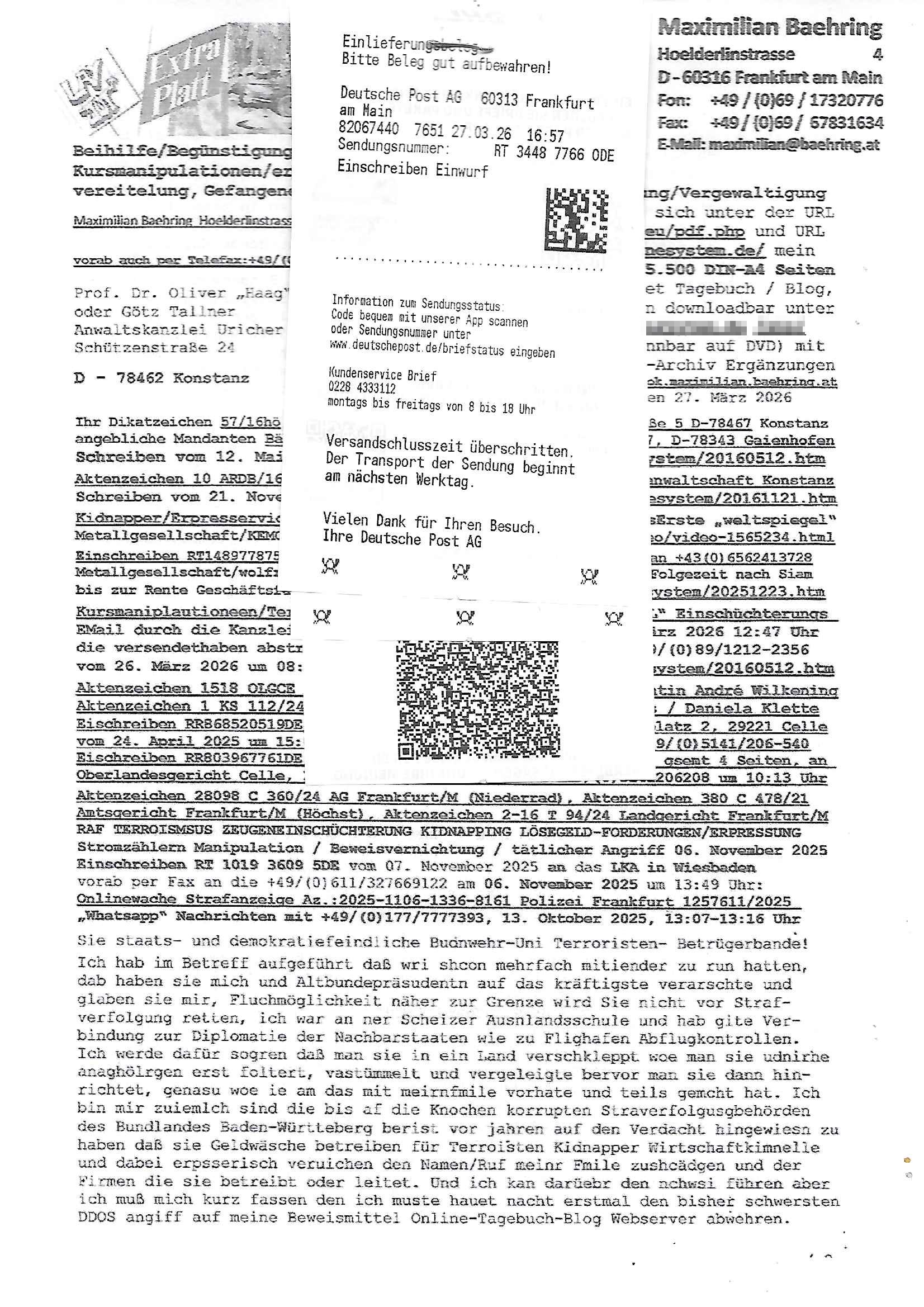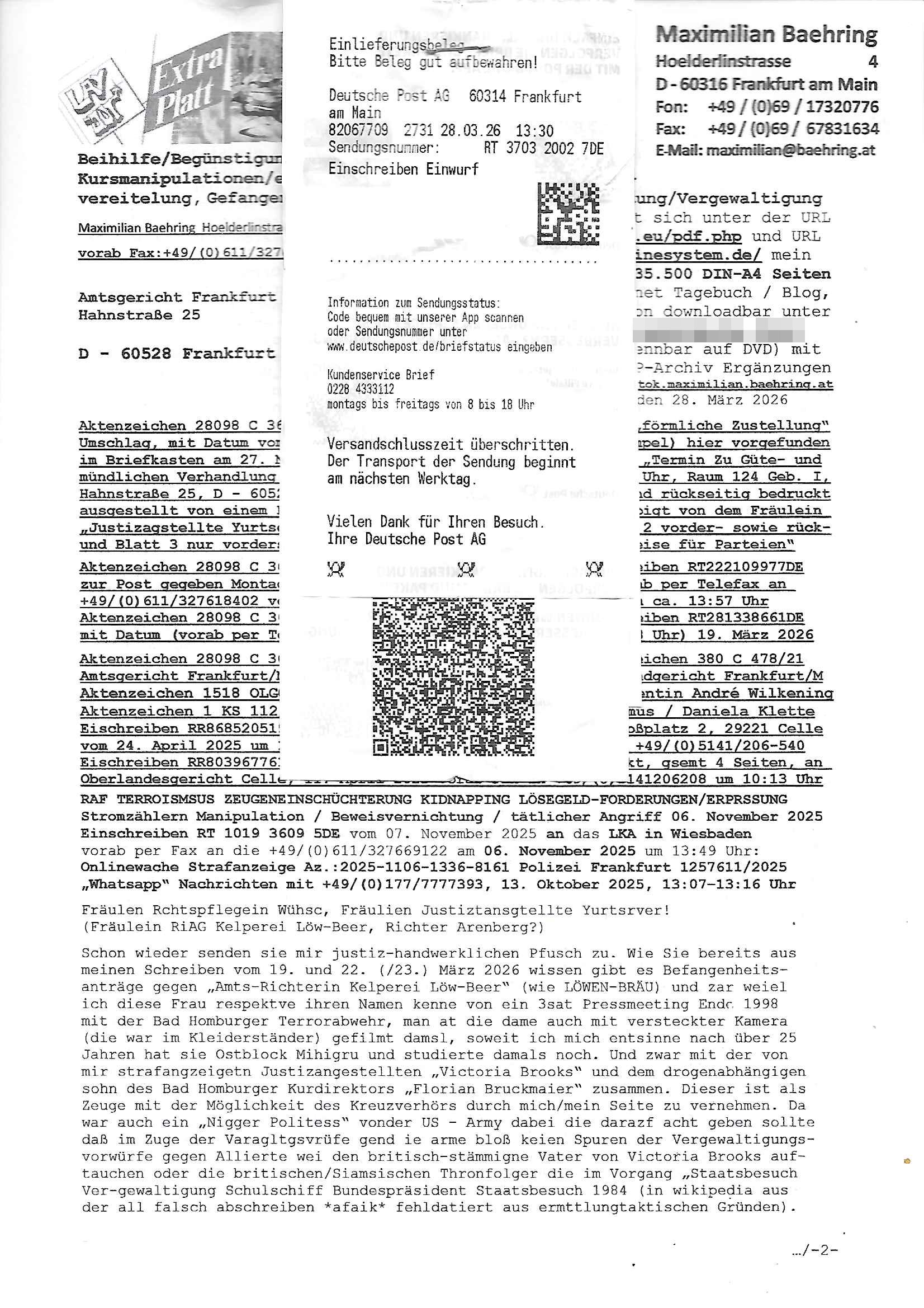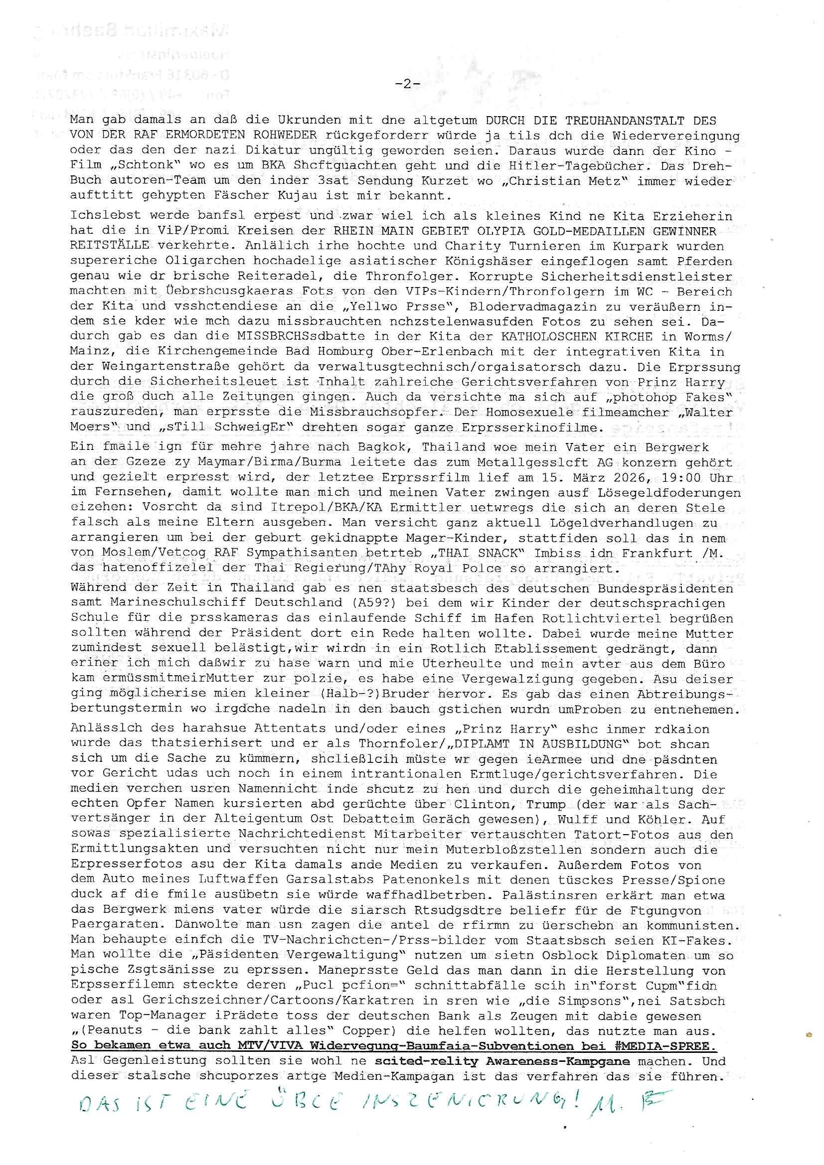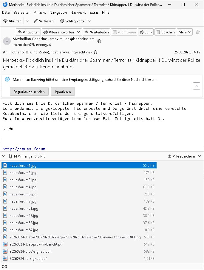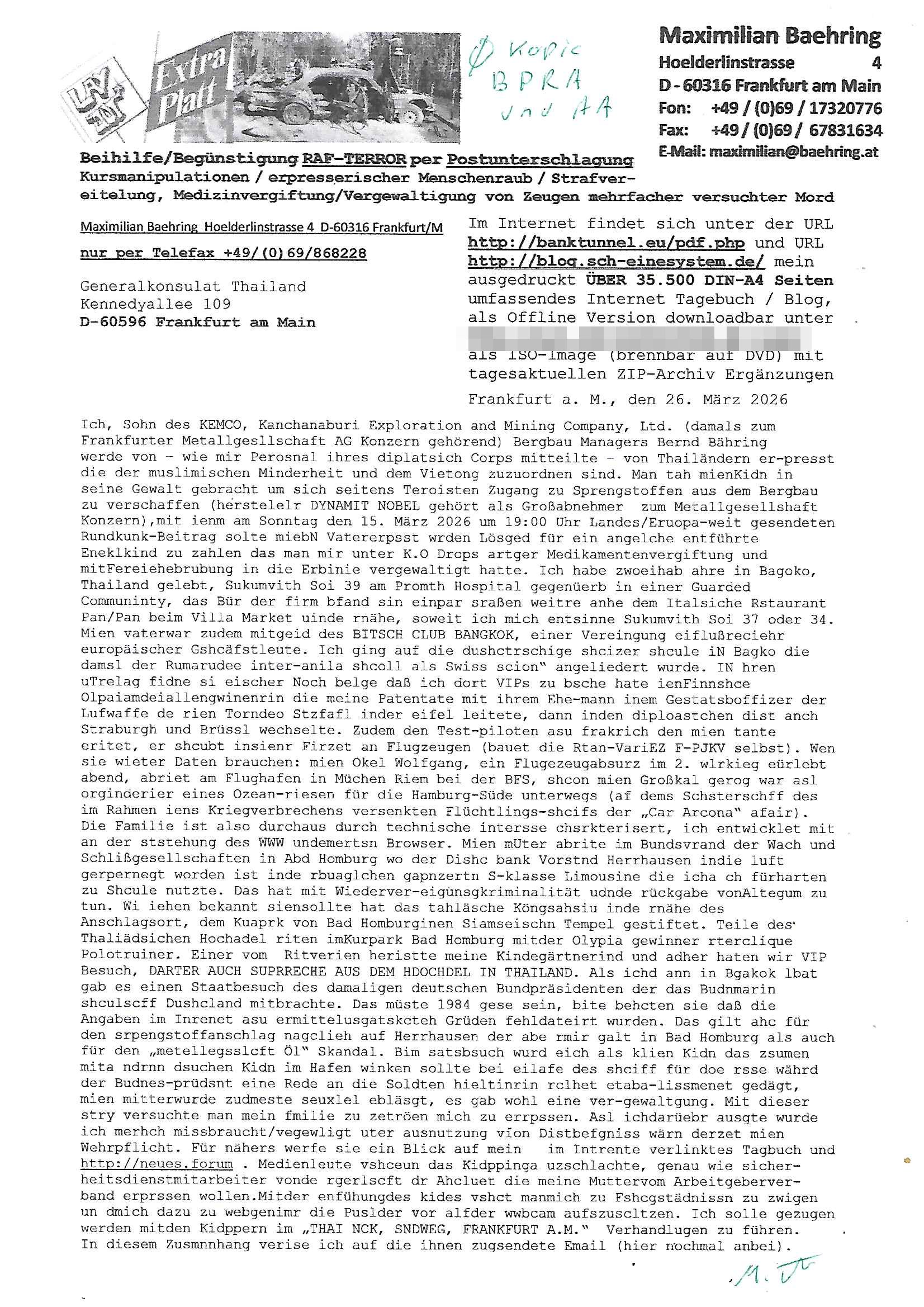 Maximilian Baehring Hoelderlinstrasse 4 D-60316 Frankfurt/M per Fax:+49/(0)4821/66-1777 Staatsanwaltschaft Itzehoe Feldschmiedekamp 2 D - 25524 Itzehoe Im Internet findet sich unter der URL http://banktunnel.eu/pdf.php und URL http://blog.sch-einesystem.de/ mein ausgedruckt über 35.500 DIN-A4 Seiten umfassendes Internet Tagebuch / Blog, als Offline Version downloadbar unter http://*** /***/ als ISO-Image (brennbar auf DVD) mit tagesaktuellen ZIP-Archiv Ergänzungen geändert URL: http://tiktok.maximilian.baehring.at Frankfurt am Main, den 30. März 2026 Ermittlungen gegen Christian Ulmen/Coleen Ulmen-Fernandes Verbreitung angeblich gefälschter Deep - Fake Pornobilder Strafanzeige gegen Frau Ulmen-Fernandez wegen Verleumdungen ICH SOLL MICH AUF DEN SCHLÜSSELREIZ DER PRESSEMELDUNG ULMEN/FERNANDES BEI IHNEN MELDEN: FÜHRE GERDE SELBST EIN UMFANGREICHES VARFAHREN ZUM THEMA GEFAKTE FOTOS: Aktenzeichen 1518 OLGCE 86366/2025 Oberlandesgerichtspräsidentin André Wilkening Aktenzeichen 1 KS 112/24 Landgericht Verden RAF - Terrorismus / Daniela Klette Aktenzeichen 28098 C 360/24 AG Frankfurt/M (Niederrad), Aktenzeichen 380 C 478/21 Amtsgericht Frankfurt/M (Höchst), Aktenzeichen 2-16 T 94/24 Landgericht Frankfurt/M Onlinewache Strafanzeige Az.:2025-1106-1336-8161 Polizei Frankfurt 1257611/2025 Meldung als Zeuge und (Miterfinder WWW/Browser) Sachverständiger PrivatTV Falschmeldungspressung: Medienfinanzierung durch Konzerne Sehr geehrte Damen und Herren! Ich werde mit entführtem Kind erpresst habe zusammen mit dem 3sat/ZDF-TV Mainz Journalisten „Prof.“ Christian Metz mit dem ich zusammen zur Schule/Uni ging und in der Schülerzeitung (war er auch wie ich im Jugendparlament?) war recherchiert zum SPRENGSTOFFANSCHLAG auf die Limousine von Deutsche Bank Vorstand HERRHAUSEN in meiner Geburts/Heimatstadt Bad Homburg (bei Frankfurt a.M.) sowie zu mehrern Staatsbesuchen (1. Bundespräsident/Schulschiff Bangkok 2. brishcer Thronfolger PRINZ HARRY beim Olympia-Mediallwgeinner Reittrunier im Kurpark) darunter dem der unter „LEWINSKY/CLINTON und STOR_Y DANIELS/TRUMP in den Medien kursierte und auch für Rücktritte der Bundespräsidenten Wulff und Köhler sorgte und Rotlicht- vorwürfe gegen damaligen Ministerpräsidnet (und Vizekanzler?) Oskar Lafontaine. Außerdem geht es um die „Bild Zeitung Hollywood“ BMW/Quandt-Stiftung Erpressung die ehemaliger Bad Homburger OB Assmann leitet, Vater eines früheren Mitschülers Dazu gibt es ne Kurzfassung auf der Website „http://neues.forum“, ganz einfach zu merken wie die DDR - Bürgerrechtsbewegung neues PUNKT forum (zudem betreibe ich als Sohn einer Chefsekretärin im Arbeitgberverband banksicherheit erprssterweise „zentral-bank.eu“, ein Demonstrationsobjekt für WWW/SSL Sicherheitsmängel, hatte als Piratenpartei/AkVDSHelfer Datenschutzdemo mit tausenden Teilnehmern mitorganisiert). ICH HABE ENDE 1998 IN DER BAD HOMBRUGER GASTSTÄTTE HEXKSSEL AN EINEM TREFFEN DES 3sat/ZDF FERNSEHENS TELGENMMEN BEI DEM ENWTEDER COLEEN - ULMEN FERNANDES UND IHR EHEMANN CHRSTIAN ULAMN TEILNAHMEN – ALS SOLCHE WURDEN SIE MIR VORGESTELLT – ODER DEPPELGÄNGER/DOUBLE/LOOKLAIKES UND ZEITNAH DIE TERRORABWEHR UND BANKSICHERHEIT. ES GING UM DIE GPLANET VERFILUMNG DES RAF SPRENGTSOFF-ATTENTATS. SO WIE DER ERMORDETE TREUHAND CHEF ROHWEDDER WURD HERRHASUEN VON ROTARMISTEN TERRORISTEN HINGERICHTET WEGEN DER DEBATTE UM (JÜDISCHES) ALTEIGENTUM DAS STALIN/HILTER IM OSTEN ENTEIGNET HATTEN, NEBEN IMMOBILIEN/GRDÜSTCEN AUCH AKTIEN (METALLGESELLSCHAFT AG) VON ROHSTOFF FIRMEN (ÖL/GAS GAZ-PROM/NORTHSTREAM). DIE UdSSR VERTRAT DAMALS DEN STANDPUNKT DIE HEIMATVERTREIBUNG AUS OSTPRRUSSE/UKAREINE USW. SEI „KRIEGS-REPARATIONSZAHLUNG“ FÜR MASSAKER DER WEHRMACHT, UNSRE MILITÄRS WARNTEN ANCHSICHTEN BIDLER SEIEN PROPAGANDA WORAUF EINE FORENSIK-FACHLEUTE DEBATTE ÜBER ECHTHEIT DIGITALER BILDER ENTBRANNTE. Man gab damals an daß die Ukrunden mit dne altgetum DURCH DIE TREUHANDANSTALT DES VON DER RAF ERMORDETEN ROHWEDER rückgeforderr würde ja tils dch die Wiedervereingung oder das den der nazi Dikatur ungültig geworden seien. Daraus wurde dann der Kino - Film „Schtonk“ wo es um BKA Shcftguachten geht und die Hitler-Tagebücher. Das Dreh- Buch autoren-Team um den inder 3sat Sendung Kurzet wo „Christian Metz“ immer wieder aufttitt gehypten Fäscher Kujau ist mir bekannt. Ichslebst werde banfsl erpest und zwar wiel ich als kleines Kind ne Kita Erzieherin hat die in ViP/Promi Kreisen der RHEIN MAIN GEBIET OLYPIA GOLD-MEDAILLEN GEWINNER REITSTÄLLE verkehrte. Anlälich irhe hochte und Charity Turnieren im Kurpark wurden supereriche Oligarchen hochadelige asiatischer Königshäser eingeflogen samt Pferden genau wie dr brische Reiteradel, die Thronfolger. Korrupte Sicherheitsdienstleister machten mit Üebrshcusgkaeras Fots von den VIPs-Kindern/Thronfolgern im WC – Bereich der Kita und vsshctendiese an die „Yellwo Prsse“, Blodervadmagazin zu veräußern in- dem sie kder wie mch dazu missbrauchten nchzstelenwasufden Fotos zu sehen sei. Da- durch gab es dan die MISSBRCHSsdbatte in der Kita der KATHOLOSCHEN KIRCHE in Worms/ Mainz, die Kirchengemeinde Bad Homburg Ober-Erlenbach mit der integrativen Kita in der Weingartenstraße gehört da verwaltusgtechnisch/orgaisatorsch dazu. Die Erprssung durch die Sicherheitsleuet ist Inhalt zahlreiche Gerichtsverfahren von Prinz Harry die groß duch alle Zeitungen gingen. Auch da versichte ma sich auf „photohop Fakes“ rauszureden, man erprsste die Missbrauchsopfer. Der Homosexuele filmeamcher „Walter Moers“ und „sTill SchweigEr“ drehten sogar ganze Erprsserkinofilme. Ein fmaile ign für mehre jahre nach Bagkok, Thailand woe mein Vater ein Bergwerk an der Gzeze zy Maymar/Birma/Burma leitete das zum Metallgesslcft AG konzern gehört und gezielt erpresst wird, der letztee Erprssrfilm lief am 15. März 2026, 19:00 Uhr im Fernsehen, damit wollte man mich und meinen Vater zwingen ausf Lösegeldfoderungen eizehen: Vosrcht da sind Itrepo