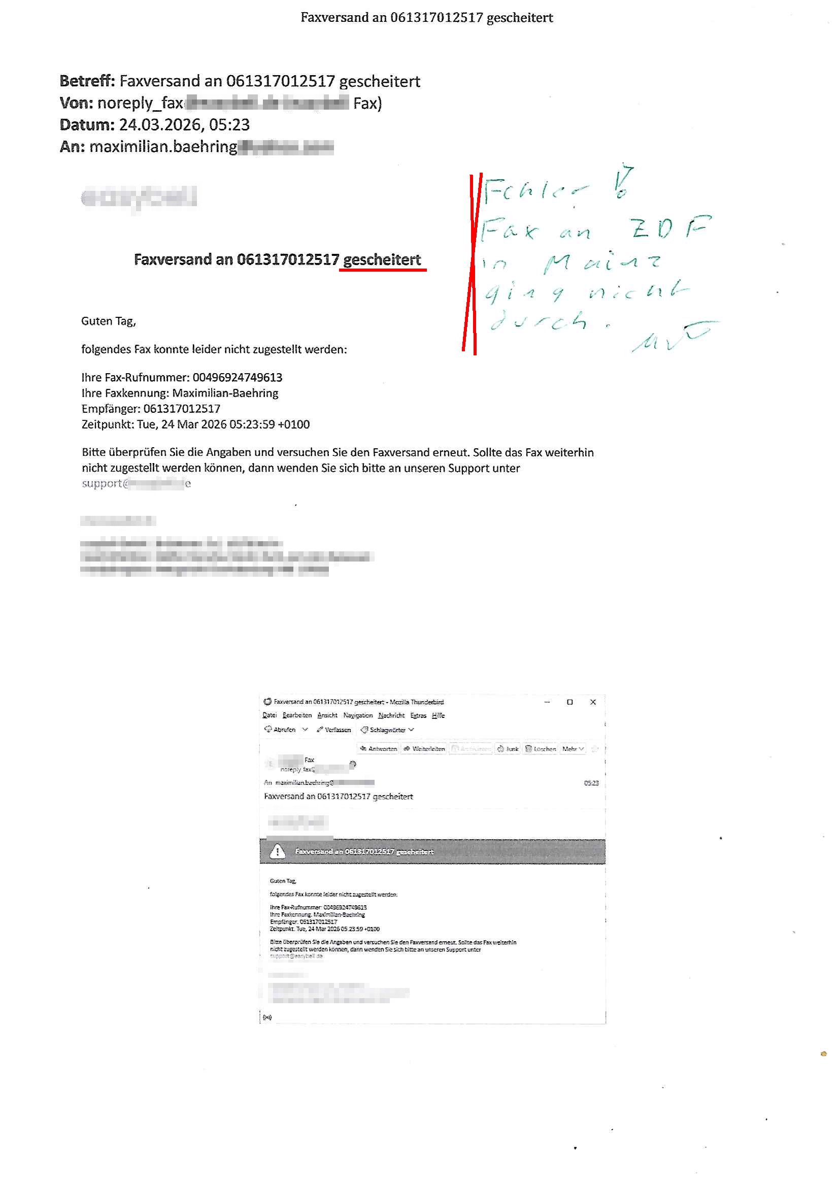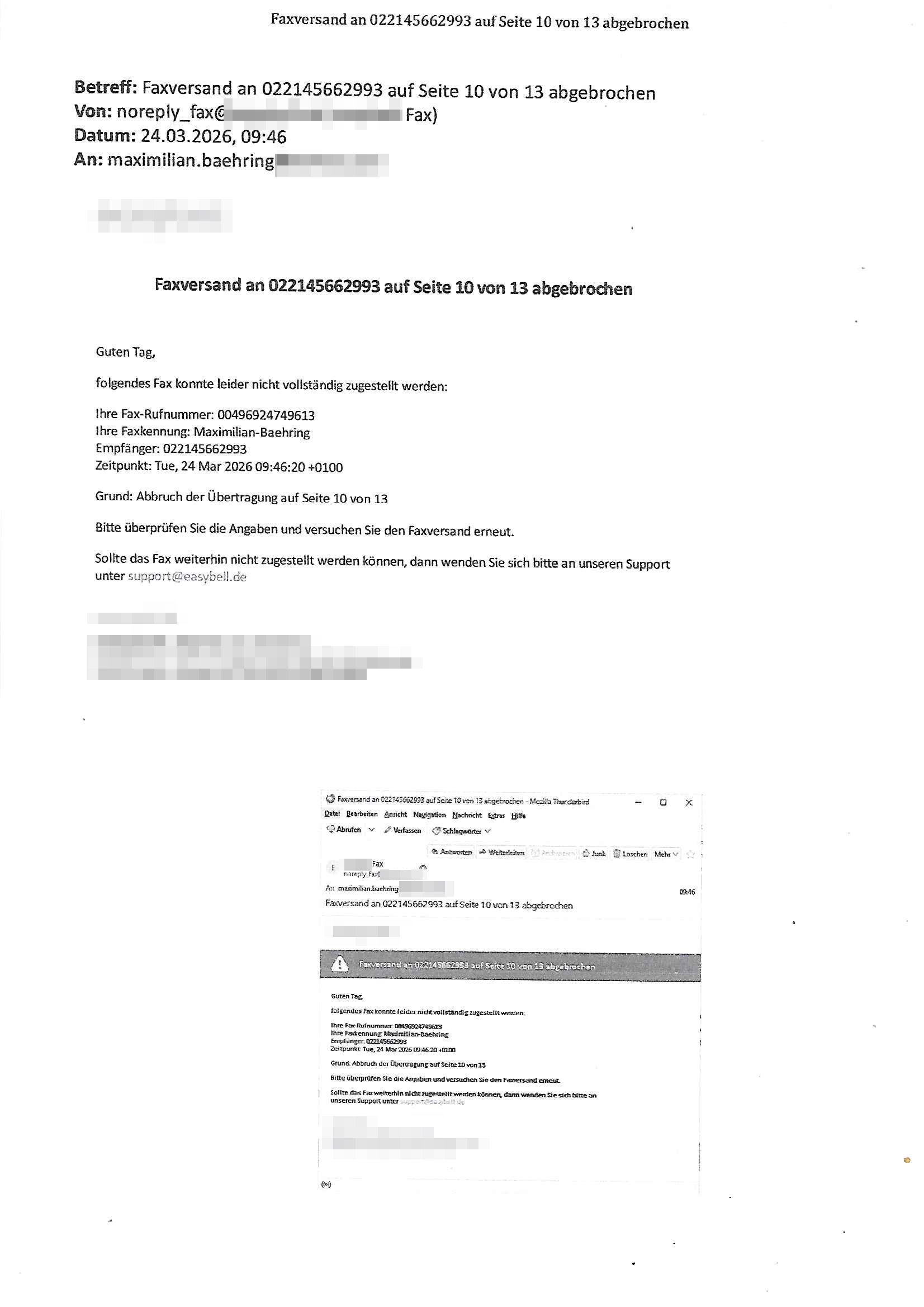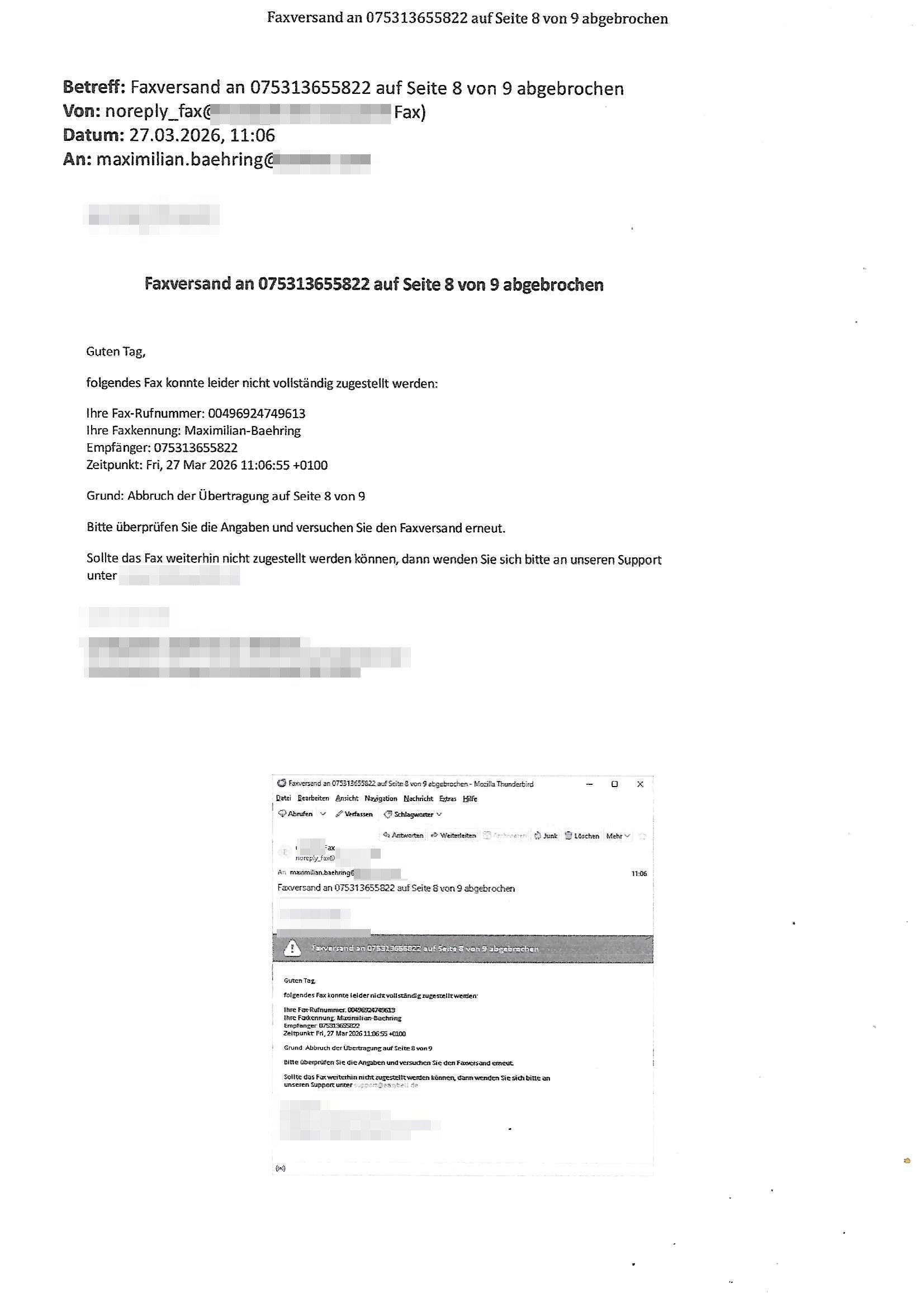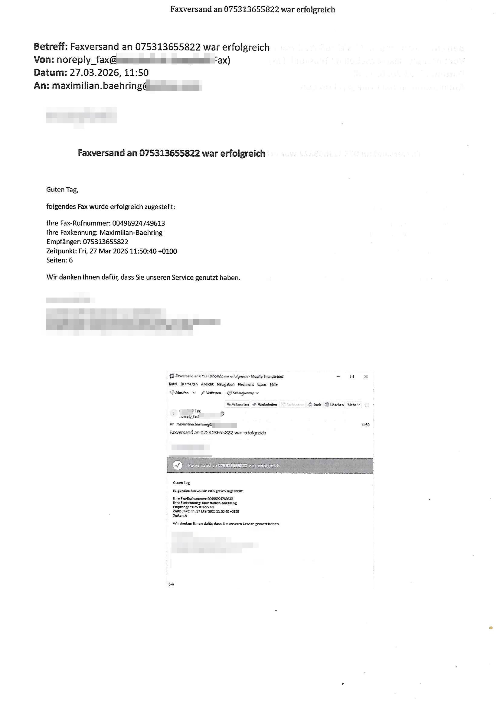 Betreff: Faxversand an 04821661777 war erfolgreich Datum: Mon, 30 Mar 2026 03:57:44 +0000 (UTC) Von: Fax <noreply_fax@> An: maximilian.baehring@ Web2Fax Faxversand an 04821661777 war erfolgreich Guten Tag, folgendes Fax wurde erfolgreich zugestellt: Ihre Fax-Rufnummer: 00496924749613 Ihre Faxkennung: Maximilian-Baehring Empfänger: 04821661777 Zeitpunkt: Mon, 30 Mar 2026 05:57:44 +0200 Seiten: 2 Wir danken Ihnen dafür, dass Sie unseren Service genutzt haben. | |