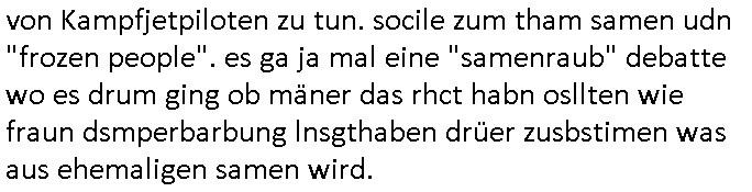 von Kampfjetpiloten zu tun. socile zum tham samen udn "frozen people". es ga ja mal eine "samenraub" debatte wo es drum ging ob mäner das rhct habn osllten wie fraun dsmperbarbung lnsgthaben drüer zusbstimen was aus ehemaligen samen wird. https://tvinfo.de/fernsehprogramm/2329320515-die-simpsons https://tvinfo.de/fernsehprogramm/2329320525-die-simpsons https://tvinfo.de/fernsehprogramm/2341163170-kulturzeit | |